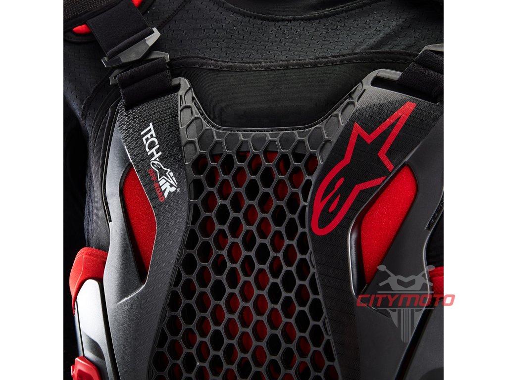 - Přilnavá streč konstrukce obsahuje plovoucí hrudní protektor z termo plastu s promyšleným ventilačním systémem.
