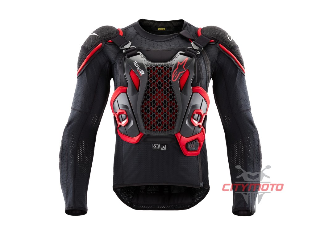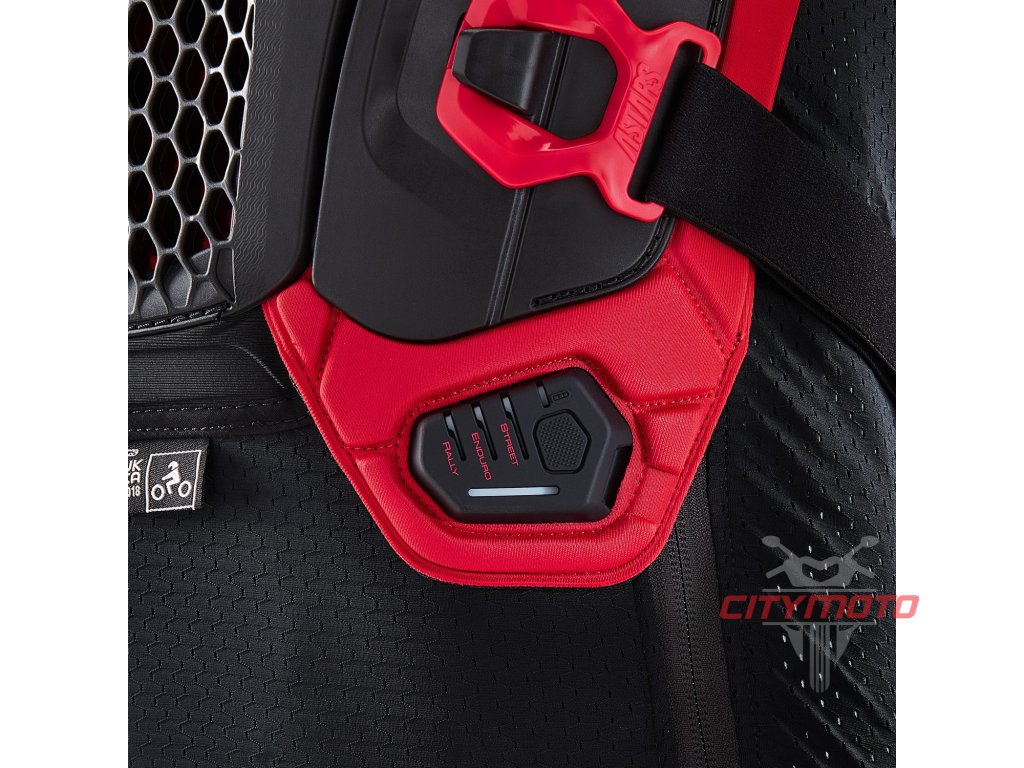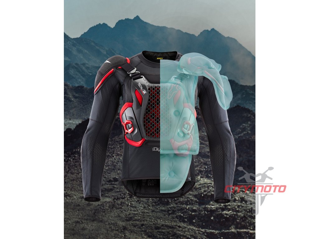 - Airbag systém, který ochránní ramena, hruď, záda, torzo, klíční kosti, krk společně s pasivní ochranou zad, hrudi, torza, loktů a ramen díky CE certifikovaných prvků tělového protektoru.