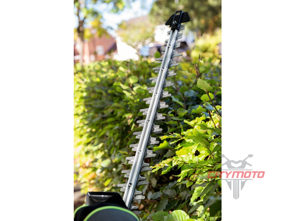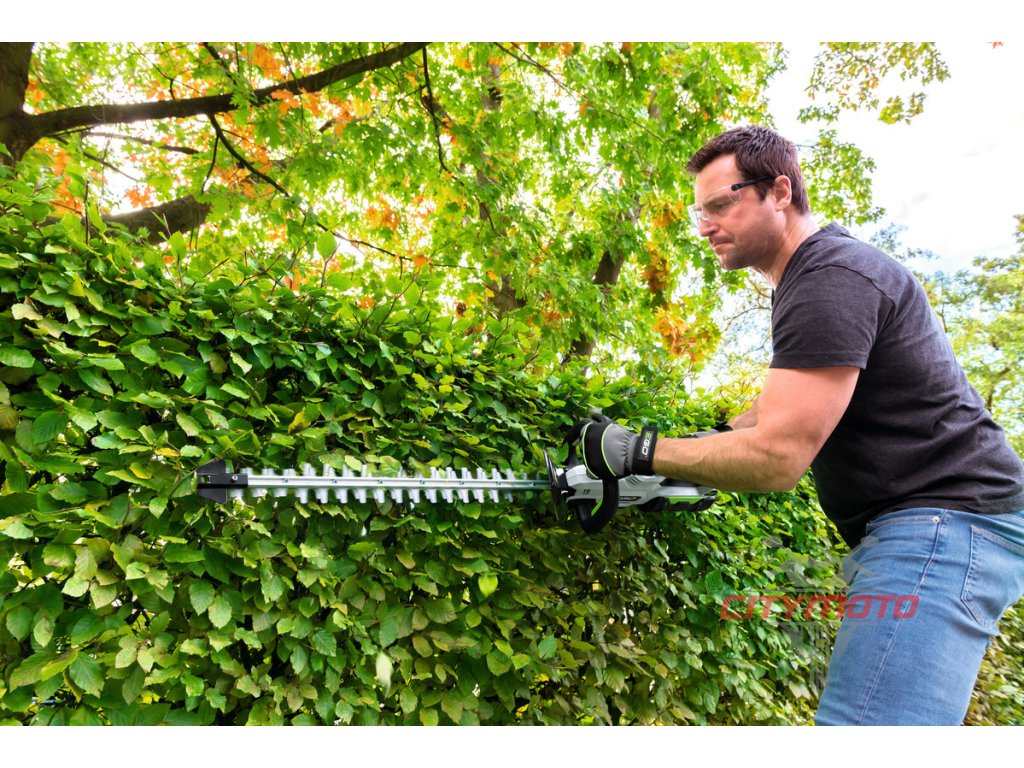 Pro kvalitní úpravu a precizní tvarování živých plotů a okrasných dřevin je důležitý čistý a přený střih, kterým rostlinu nepoškodíte, nezraníte a rostlina tak po zastřižení zůstává zdravá a svěží. Proto jsou tyto akumulátorové nůžky na živý plot vybaveny přesnou, vysoce kvalitní 61cm dlouhou oboustrannou lištou, přesně broušenou pomocí diamantového nástroje. Mimořádně ostré střižné zuby mají rozteč 26mm a hloubku 17mm a jsou schopny ustřihnout dřevinu do průměru až 15 mm. Ochranný doraz špičky lišty zabraňuje poškození při případném kontaktu lišty se zdí či jinou pevnou překážkou. Pro lehkou a přesnou práci a manipulaci je celý stroj dokonale ergonomicky vyvážen. Kratší lišta v celkové délce 61cm dělá ze stroje skutečně mrštného "holiče". Jak rukojeť, tak i madlo držení je opatřeno bezpečnostní pojistkou, která zaručuje v případě uvolnění okamžité vypnutí stroje. Díky příjemné ovládácí rukojeti je držení nůžek při práci velmi stabilní, bezpečné a pohodlné. Na rukojeti je umístněn vypínač, který zajišťuje při stisknutí plynulé a postupné spuštění stroje. Na pohon nůžek na živý plot lze použít jakoukoliv baterii ze sortimentu EGO a např. baterie 2,5Ah vám umožní pracovat nepřetržitě až 75 minut a s baterií 5,0Ah až 150 minut. Naše lithiové baterie EGO Power+ 56V Arc Vám poskytnou dostatek energie pro pohon výkonného a účinného bezuhlíkového motoru s vysokou odolností proti přetížení a přímým náhonem na pracovní nástroj. Stroj je mimořádně tichý a sousedé Vás při práci ani neuslyší. Žádná napájecí šňůra, žádné provozní náplně, žádný hluk, žádný zápach. Nízká hmotnost, pohodlný úchop a snadná manipulace dělají z tohoto stroje vynikajícího pomocníka na každou i rozlehlejší zahradu.