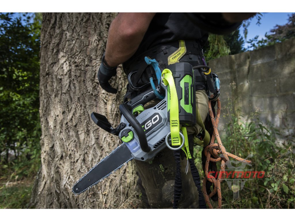 Lehká a kompaktní, jednoruční řetězová pila CS1200E - Nejmenší z nabídky EGO, řetězová pila s lištou 30cm a řeznou rychlostí 20,0 m/s, pilovým řetězem EGO AC1200Q (1/4" x 1,1mm) se 64 články a dělením článků 1/4" a šířkou vodící drážky 1,1mm a hmotností 2,4kg svědší o vysokých ambicích pily. Svým výkonem se zcela vyrovná silnějším benzínovým pilám v dané kategorii a jedná se o ideální stroj pro práci ve výškách, stromovou chirurgii, sadařství, tesařství nebo na údržbu veřejné zeleně v místech, citlivých na hluk a zplodiny výfuku, jako jsou školy, obytné zóny, nemocnice, hřbitovy apod.