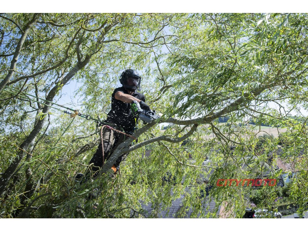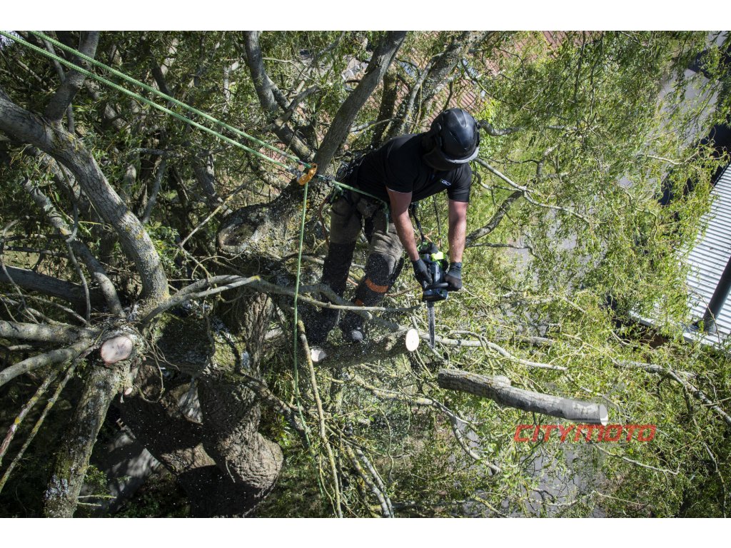Pro lehkou a přesnou práci a manipulaci je celá pila dokonale ergonomicky vyvážena. Z tohoto důvodu a z bezpečnostních důvodů je konstrukčně pila přizpůsobena k použití s baterií 2,5Ah (BA1400T). Lišta v celkové délce 30cm přidává pile na celkové kompaktnosti. Madlo držení je opatřeno bezpečnostní pojistkou, která zaručuje v případě uvolnění okamžité vypnutí stroje. Na rukojeti je umístněn vypínač, který zajišťuje při stisknutí plynulé a postupné spuštění stroje. Díky příjemné ovládácí rukojeti je držení pily při práci velmi stabilní, bezpečné a pohodlné a stroj je vhodný pro jakékoliv výškové práce. Výše uvedená 2,5Ah baterie BA1400T vám umožní uskutečnit až 130 řezů. Tato baterie EGO Power+ 56V Arc Vám poskytne dostatečnou rezervu energie pro pohon výkonného a účinného bezuhlíkového elektromotoru s přímým náhonem na řetězku. Doménou této pily je, díky pružnému uložení pohyblivých částí, znatelné snížení vibrací pily přenášených na ruce pracovníka při použití. Mazání řetězu je zde plně automatické a díky spolehlivému olejovému čerpadlu je podáváno příslušné množství mazacího oleje přímo do vodící drážky lišty. Díky konstrukci lišty a posuvu řetězu se dopraví každá kapka mazacího oleje přesně tam kde je to nutné. Pro kontrolu hladiny mazacího oleje je nádržka z transparentního plastu, takže má pracovník neustále na očích aktuální stav oleje. Pila je při svém chodu mimořádně tichá. Nízká hmotnost, pohodlný úchop, bezpečná a snadná manipulace a obratnost dělají z této jednoruční řetězové pily vynikajícího pracanta v rukou jak profesionála - pracovníka údržby komunální zeleně nebo tesaře, tak i domácího uživatale nebo farmáře.