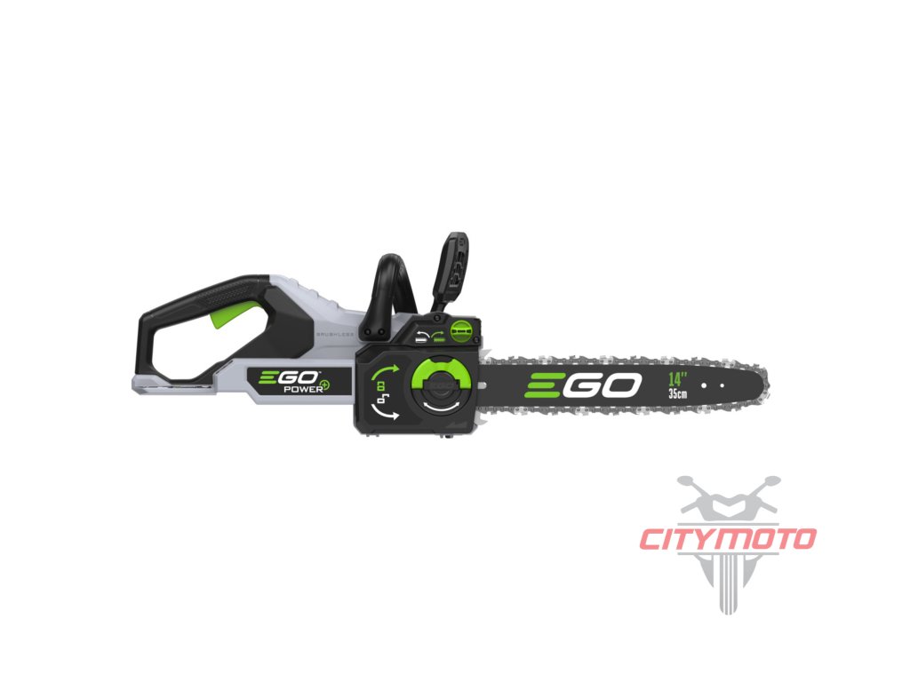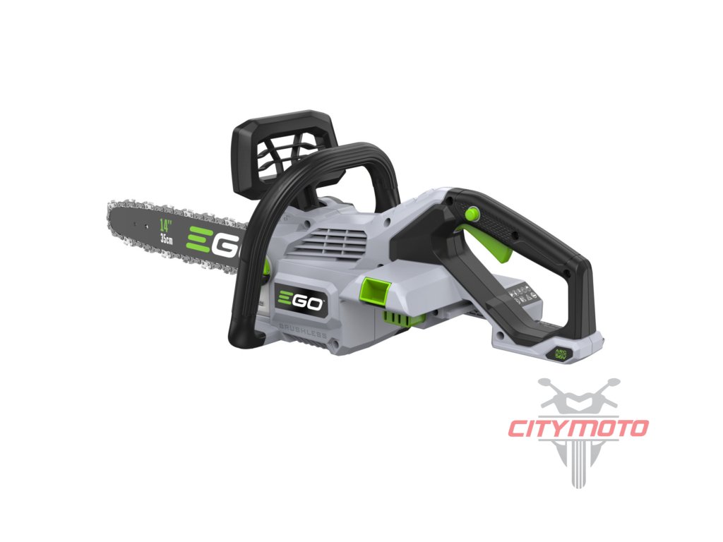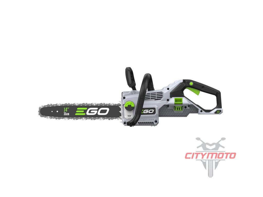 Pro lehkou a přesnou práci a manipulaci je celá pila dokonale ergonomicky vyvážena. Kratší lišta v celkové délce 35cm poskytuje pile mimořádnou ovladatelnost. Madlo držení je opatřeno bezpečnostní pojistkou, která zaručuje v případě uvolnění okamžité vypnutí stroje. Na rukojeti je umístněn vypínač, který zajišťuje při stisknutí plynulé a postupné spuštění stroje. Díky příjemné ovládácí rukojeti je držení pily při práci velmi stabilní, bezpečné a pohodlné a stroj je vhodný pro jakékoliv zahradnické práce v domácím použití. Pomocí "semi-automatic" zařízení je napínání pilového řetězu velmi jednoduché a není potřeba žádného nářadí. Ztrátové mazání řetězu je zde plně automatické a díky spolehlivému olejovému čerpadlu je podáváno příslušné množství mazacího oleje přímo do vodící drážky lišty. Díky konstrukci lišty a posuvu řetězu se dopraví každá kapka mazacího oleje přesně tam kde je to nutné. Pro kontrolu hladiny mazacího oleje je pila opatřena kontrolním olejoznakem. Na pohon pily lze použít jakoukoliv baterii ze sortimentu EGO a např. baterie 2,5Ah vám umožní uskutečnit až 130 řezů a s baterií 5,0Ah až 300 řezů. Naše lithiové baterie EGO Power+ 56V Arc Vám poskytnou dostatek energie pro pohon dostatečně výkonného a účinného bezuhlíkového elektromotoru s přímým náhonem na řetězku. Díky externímu umístění baterie mimo kapotáž pily je baterie efektivněji ochlazována a je schopna efektivněji napájet motor pily. Pila je mimořádně tichá a sousedé Vás při práci ani neuslyší. Žádná napájecí šňůra, žádné provozní náplně (kromě oleje pro mazání řetězu), žádný hluk, žádný zápach a minimální údržba. Nízká hmotnost, pohodlný úchop a snadná manipulace dělají z této řetězové pily vynikajícího pomocníka do každé chalupy.