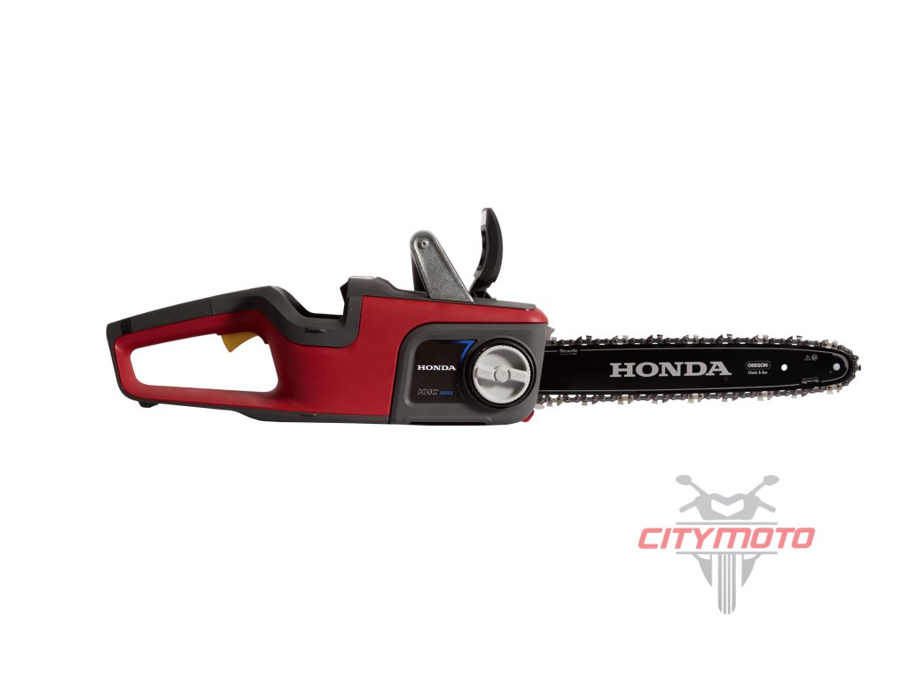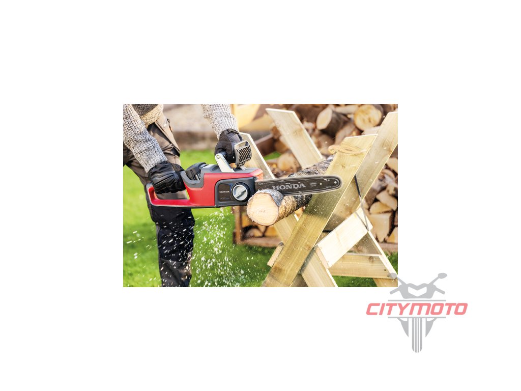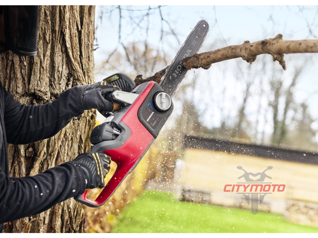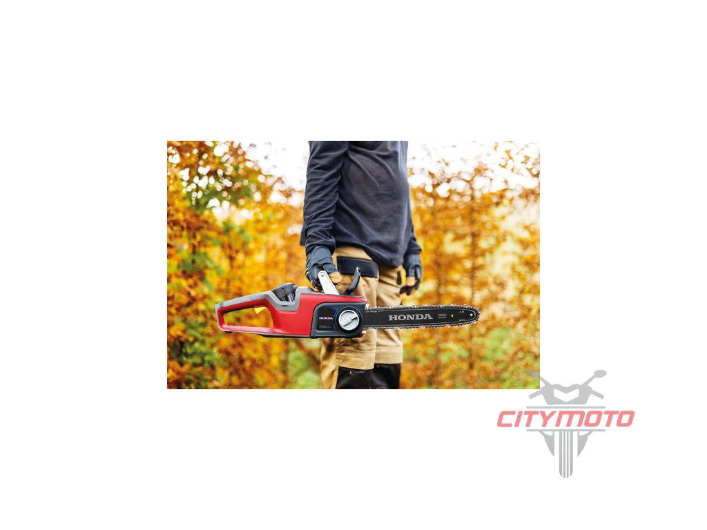Pro lehkou a přesnou práci a manipulaci je celá pila dokonale ergonomicky vyvážena. Kratší lišta v celkové délce 35cm poskytuje pile mimořádnou ovladatelnost. Madlo držení je opatřeno bezpečnostní pojistkou, která zaručuje v případě uvolnění okamžité vypnutí stroje. Na rukojeti je umístněn vypínač, který zajišťuje při stisknutí plynulé a postupné spuštění stroje. Díky příjemné ovládácí rukojeti je držení pily při práci velmi stabilní, bezpečné a pohodlné a stroj je vhodný pro jakékoliv zahradnické práce v domácím použití. Pomocí "semi-automatic" zařízení je napínání pilového řetězu velmi jednoduché a není potřeba žádného nářadí. Ztrátové mazání řetězu je zde plně automatické a díky spolehlivému olejovému čerpadlu je podáváno příslušné množství mazacího oleje přímo do vodící drážky lišty. Díky konstrukci lišty a posuvu řetězu se dopraví každá kapka mazacího oleje přesně tam kde je to nutné. Pro kontrolu hladiny mazacího oleje je pila opatřena kontrolním olejoznakem. O pohon se stará výkonný bezuhlíkový elektromotor s vysokou odolností proti přetížení a přímým náhonem na řetězku. O napájení elektromotoru se stará vysoce výkonný Li-ion akumulátor s napětím 36 V s důmyslným vnitřním chlazením jednotlivých článků, což znatelně přispívá k delší výdrži akumulátoru pod vysokou zátěží. Akumulátory HONDA svojí hmotností patří k nejlehčím na trhu. Pila je mimořádně tichá a sousedé Vás při práci ani neuslyší. Žádná napájecí šňůra, žádné provozní náplně (kromě oleje pro mazání řetězu), žádný hluk, žádný zápach a minimální údržba. Nízká hmotnost, pohodlný úchop a snadná manipulace dělají z této řetězové pily vynikajícího pomocníka do každé chalupy.