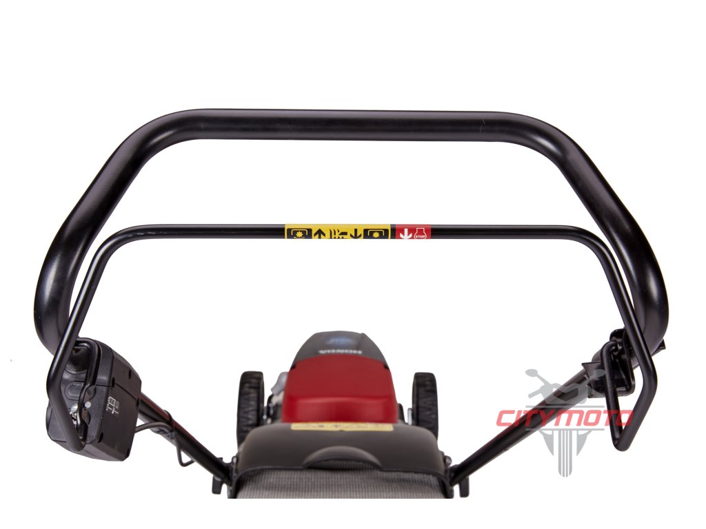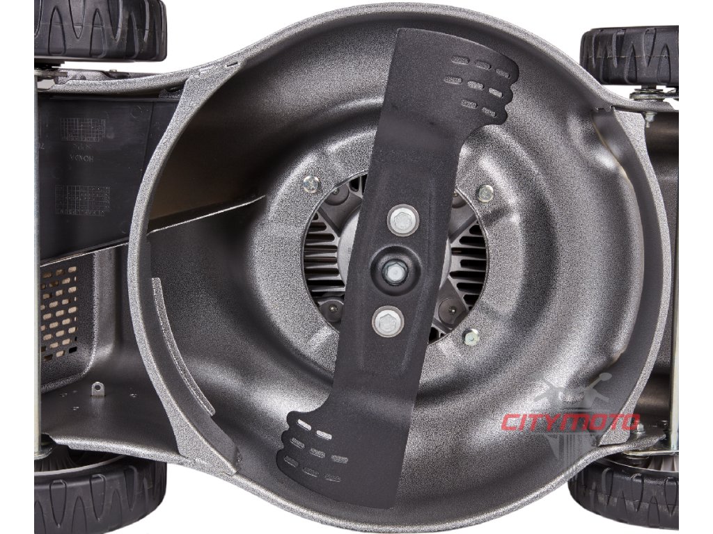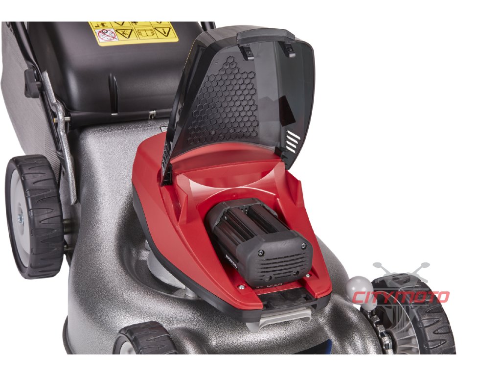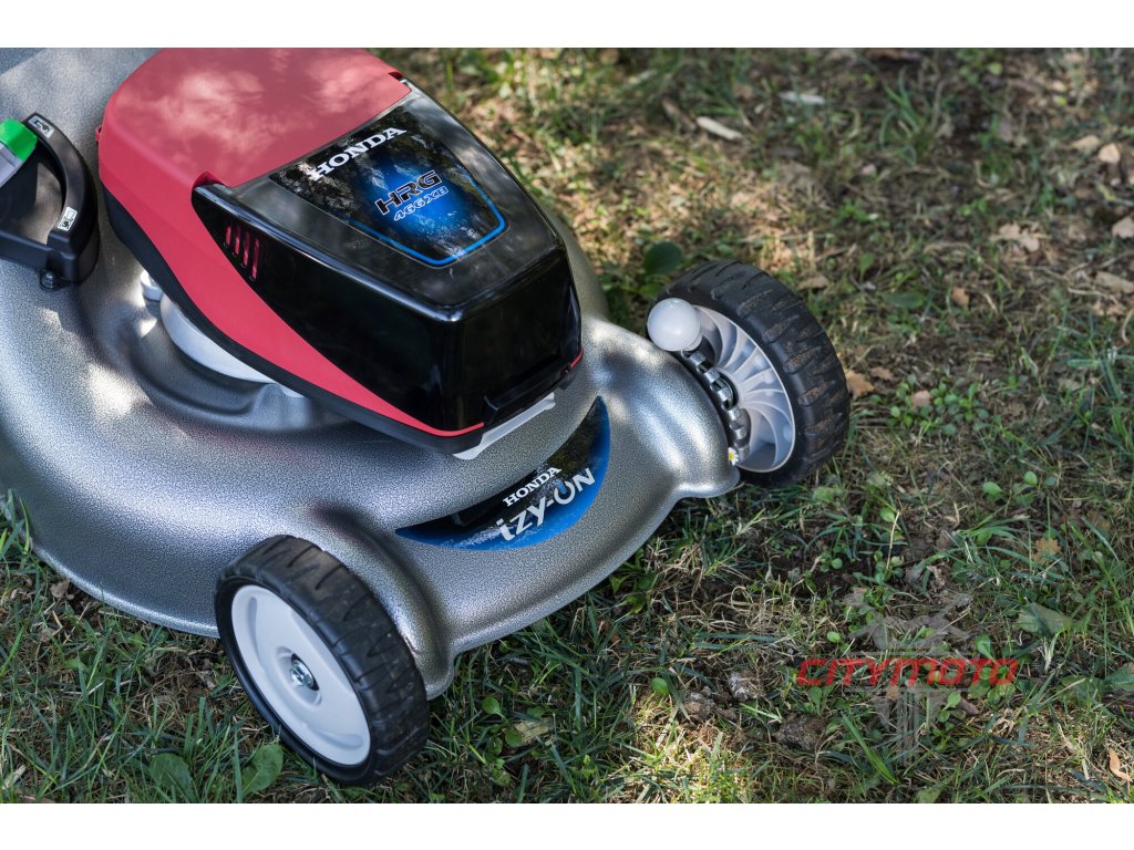Aumulátorová Honda HRG416 XB - sada: nový model řady HRG pohání profesionální vícepólový elektromotor 36V, uložený v hliníkovém plášti a průmyslových kuličkových ložiskách, bezpečnostní brzdou rotace sekacího nože, na pevném a odolném podvozku z oceli, opatřeném nastavením výšky sekání na každé nápravě, se záběrem sečení 41 cm.