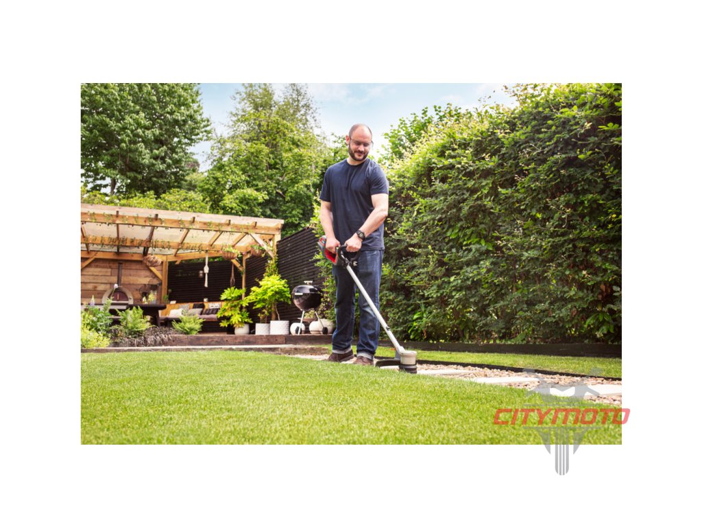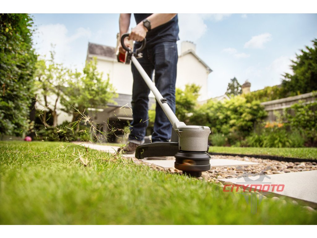 Nylonová struna namotaná na cívce poloautomatické strunové hlavy typu "Tap & Go" se v případě potřeby automaticky odmotá pouhým poklepem strunovou hlavou o zem. Spolehlivý systém tak umožní pracovat bez přerušení a včas dokončit svoji práci. Dokonalá ochrana před odlétávající trávou je zajištěna díky rozměrnému a robustnímu bezpečnostnímu krytu. Li-Ion akumulátory 36 V v provedení buď 2 Ah, 4 Ah nebo 6 Ah Vám poskytnou dostatek výkonu a času pro dokončovací práce při likvidaci travního porostu kolem zídek, plotů, stromů, keřů a jiných překážek. Sousedé Vás při práci ani neuslyší a Vy díky nízké hmotnosti a dokonalému vyvážení stroje ani nepocítíte únavu.