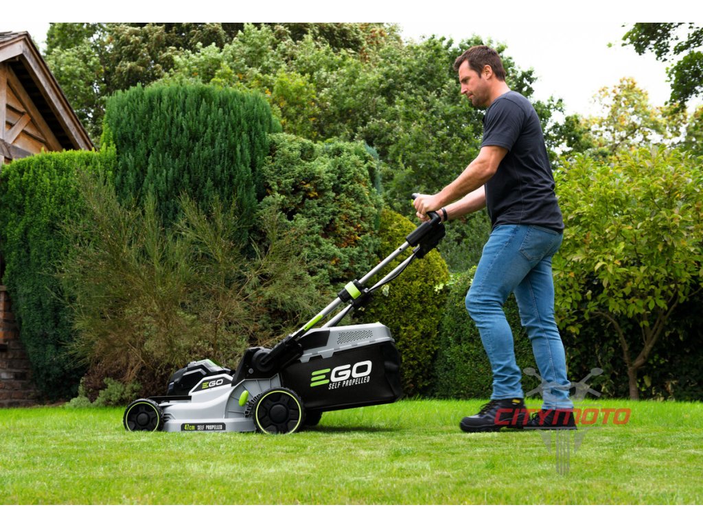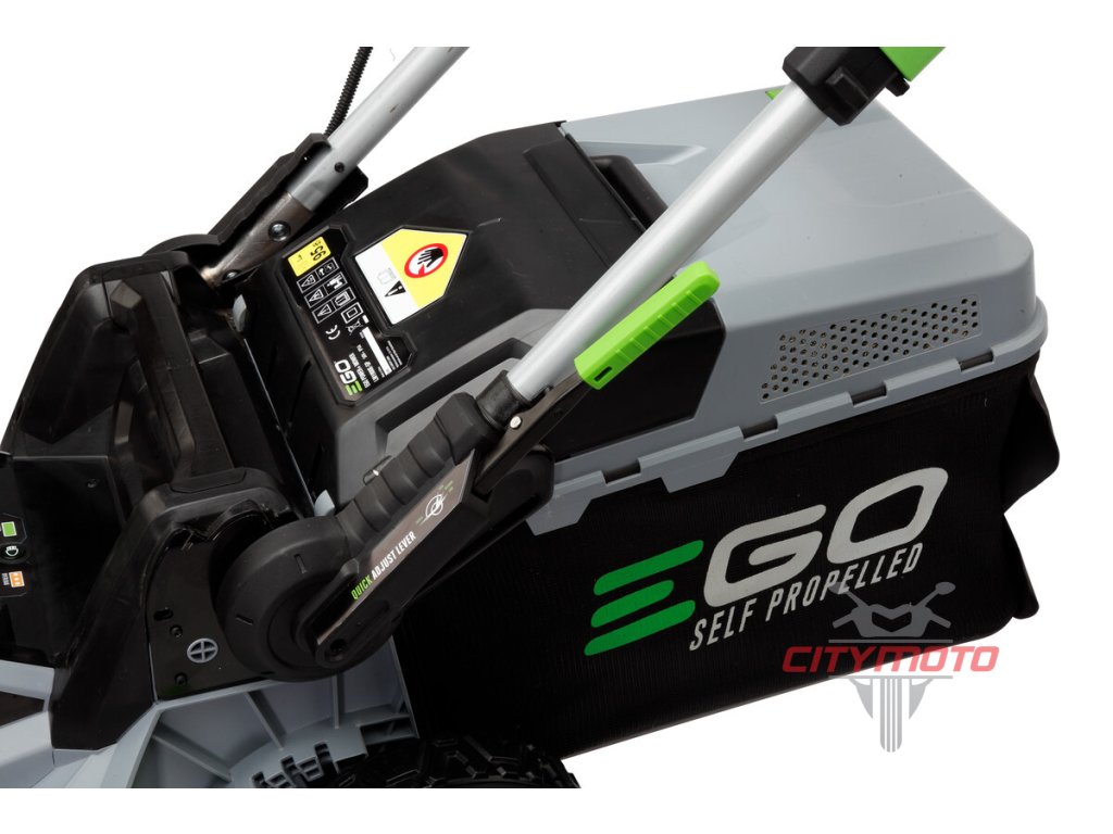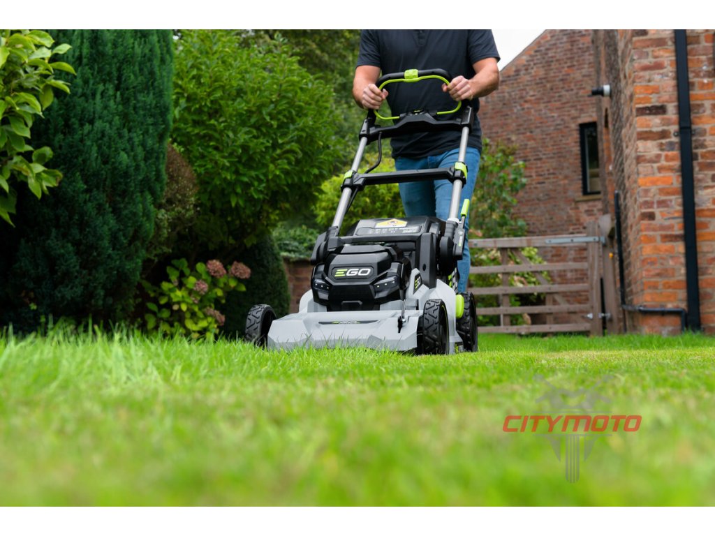 Model EGO LM 1900E-SP - záběr sečení 47cm a plynule proměnlivý pojezd, objem sběrného koše 55L, teleskopická a výškově nastavitelná komfortní rukojeť.