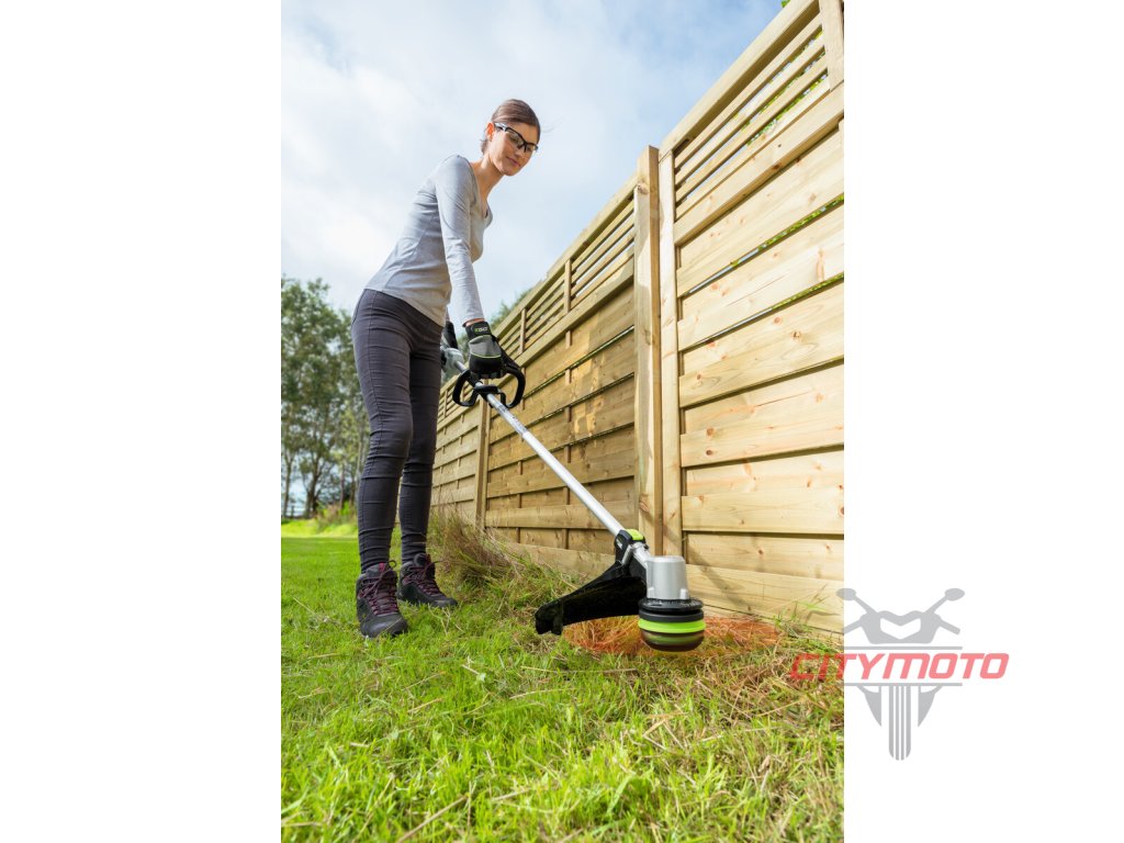 Nylonová žací struna o ∅ 2,4mm namotaná na cívce poloautomatické strunové hlavy se v případě potřeby automaticky prodlouží pouhým poklepem strunovou hlavou o zem. Když je zásoba struny na cívce spotřebována, její doplnění je velmi snadné. Průlomová technologie EGO PowerloadTM zcela odstraňuje mnohdy problematické doplňování náhradní struny a automaticky náhradní strunu doplní a navine za vás během několika vteřin. Stačí provléci náhradní strunu strunovou hlavou, stlačit zelené tlačítko PowerloadTM a nechat systém, aby strunu navinul sám a proces dokončil. Spolehlivý systém tak umožní pracovat bez přerušení i méně technicky zdatným uživatelům a včas dokončit svoji práci. Dokonalá ochrana před odlétávající trávou je zajištěna díky rozměrnému a robustnímu bezpečnostnímu krytu. Na pohon vyžínače lze použít jakoukoliv baterii ze sortimentu EGO a např. baterie 2,5Ah vám umožní pracovat nepřetržitě 30 minut a s baterií 5,0Ah dokonce hodinu. Naše lithiové baterie EGO Power+ 56V Arc Vám poskytnou dostatek energie pro pohon výkonného a účinného bezuhlíkového motoru pro dokončovací práce při likvidaci travního porostu kolem zídek, plotů, stromů, keřů a jiných překážek. Díky možnosti volby rychlosti otáčení žací struny Vás sousedé při práci ani neuslyší a Vy díky nízké hmotnosti a dokonalému vyvážení stroje ani nepocítíte únavu.