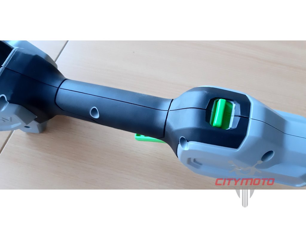 Nylonová žací struna o ∅ 2,4mm namotaná na cívce poloautomatické strunové hlavy se při práci v případě potřeby automaticky prodlouží pouhým poklepem strunovou hlavou o zem. Když je zásoba struny na cívce spotřebována, její doplnění je velmi snadné. Průlomová technologie EGO PowerloadTM zcela odstraňuje mnohdy problematické doplňování náhradní struny a automaticky náhradní strunu doplní a navine za vás během několika vteřin. Stačí provléci náhradní strunu strunovou hlavou, stlačit zelené tlačítko PowerloadTM a nechat systém, aby strunu navinul sám a proces dokončil. Spolehlivý systém tak umožní pracovat bez přerušení i méně technicky zdatným uživatelům a včas dokončit svoji práci. Dokonalá ochrana před odlétávající trávou je zajištěna díky rozměrnému a robustnímu bezpečnostnímu krytu. Na pohon vyžínače lze použít jakoukoliv baterii ze sortimentu EGO a např. baterie 2,5Ah vám umožní pracovat nepřetržitě 30 minut a s baterií 5,0Ah dokonce hodinu. Naše lithiové baterie EGO Power+ 56V Arc Vám poskytnou dostatek energie pro pohon výkonného a účinného bezuhlíkového motoru pro dokončovací práce při likvidaci travního porostu kolem zídek, plotů, stromů, keřů a jiných překážek. Díky možnosti volby rychlosti otáčení žací struny Vás sousedé při práci ani neuslyší a Vy díky nízké hmotnosti a dokonalému vyvážení stroje ani nepocítíte únavu.