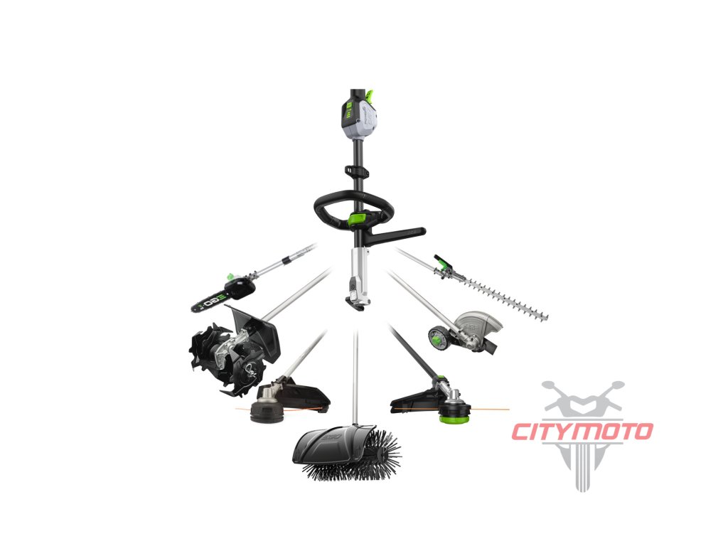 Víceúčelový stroj EGO Power+ Multi-Tool je lehký, luxusní stroj, v základu podobný křovinořezu s celoročním využitím i mimo vegetační období a nejen pro likvidaci porostů. Široká nabídka pracovních nástavců dělá z tohoto „víceúčeláku“ uživatelsky příjemné, zahradní nářadí pro ohromnou šíři různých zahradních činností jako jsou kromě sečení pomocí strunové hlavy nebo žacích kotoučů i úprava živých plotů, pěstěných trávníků, korun stromů různého vzrůstu, dokonce i úklid spadaného listí, prachu či čerstvě napadaného sněhu na chodníkách kolem domu. U této pohonné jednotky přibyla možnost použití nástavce se strunovou hlavou typu "Line IQTM". Tato chytrá technologie, posouvá užitnou hodnotu stroje výše, než tomu je u jeho předchůdců. Zcela odstraňuje mnohdy problematické doplňování náhradní struny a zároveň není třeba při práci poklepávat strunovou hlavou o zem k prodloužení vyžínací struny. Vhodný zejména především pro ženy nebo seniory. Díky možnosti rozpojit celý stroj zhruba ve své polovině celé délky je i nesporně skladnější pro transport a uskladnění. Při práci je stroj zavěšen na bezpečnostní karabině ramenního popruhu nebo jen tak nesený ve volné ruce. Ovládání pomocí obloukové rukojeti s antivibračním úchopem je velice snadnou záležitostí, kterou zvládne i méně zručný uživatel. Stroj je hodně kompaktní, při použití velmi obratný, a proto vhodný pro používání celého portfolia pracovních nástavců, do kterého patří kromě již zmíněné strunové hlavy, žací nástroje jako je případně ocelový žací kotouč, nástavec s řetězovou prořezávací pilou, nástavec s nůžkami na živý plot, zařezávač trávníkových okrajů, minirotavátor, válcový kartáč a dosah jednotlivých nástavců se dá prodloužit pomocí karbonového prodlužovacího nástavce. Na pohon stroje lze použít jakoukoliv baterii ze sortimentu EGO a např. baterie 2,5Ah vám umožní pracovat s vyžínacím nástavcem ST1700 s technologií "Line IQTM"nepřetržitě až 30 minut a s baterií 5,0Ah až 60 minut nebo s nástavcem nůžek na živý plot až 37, resp. 82 minut . Naše lithiové baterie EGO Power+ 56V Arc Vám poskytnou dostatek energie pro pohon výkonného a účinného bezuhlíkového motoru pro zahradnické práce jakéhokoliv druhu. Základní výbava pohonné jednotky zahrnuje kromě stroje samotného, jednoduchý ramenní popruh s bezpečnostní karabinou pro zavěšení. Jako další příslušenství lze v síti autorizovaných prodejců získat celou řadu originálních doplňků jako jsou náhradní struny, kotouče, řetízky k prořezávací řetězové pile, ochranné pracovní pomůcky a další. Díky možnosti variabilní rychlosti otáčení lze jako sekací nástroj použít RTX2300, profesionální nástavec Rotocut – travní nůžky pro křovinořezy. Stroj je mimořádně tichý a sousedé Vás při práci ani neuslyší. Díky nízké hmotnosti, zavěšené na jednostranném ramenním postroji a dokonalému vyvážení stroje ani nepocítíte únavu.