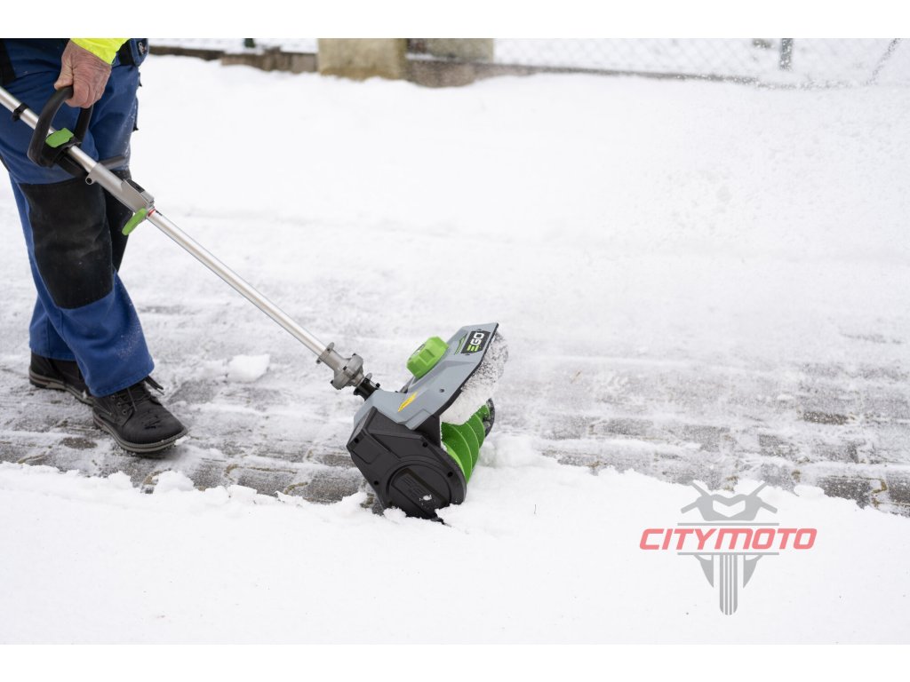 Pokud jste vlastníky malých zpevněných ploch, jako jsou chodníky kolem domku nebo garáže a občas potřebujete prohrábnout uličku od sněhu, oceníte účinnost a kompaktnost nástavce s aktivním hrablem. Jedná se o zařízení pro úklid a odhoz malé sněhové vrstvy (do cca 10cm) z chodníků kolem domku a pod. do vzdálenosti až 7m. Na jeden průjezd odklidíte uličku širokou 30cm. Pevná převodovka hravě zvládá přenos síly od výkonného bezuhlíkového elektromotoru 56V, napájeného některou z nabídky spolehlivých baterií Ego Power+. Ve spojení s akumulátotovou pohonnou jednotkou se jedná o stroj vhodný pro použití kolem rodinného domku, malých domácích chodníčcích, ploch a stáních pro auto. Prostě výkon, funkčnost, komfort obsluhy, nulové emise a hlučnost. Zavěšením celého stroje na jednostranný nosný popruh je práce s aktivním hrablem snadnou záležitostí.