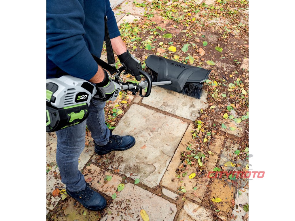 Pokud jste vlastníky malých zpevněných ploch, jako jsou chodníky, parkoviště, manipulační či provozní plochy, oceníte účinnost a kompaktnost nástavce s válcovým kartáčem. Silonové štětiny 1,5mm na válci o záběru 56 cm jsou ideální volbou pro účinné zametání prachu a dalších nečistot jako je dokonce i mech a vlhké listí z pevných povrchů. Účinný plastový kryt chrání obsluhu před případnými odletujícími zbytky. Ke kartáči je možné dokoupit i tzv. lamelový kartáč ARB2100, který je velmi vhodný pro odklizení z povrchu i vrstvy vody nebo sněhu. Pevná převodovka hravě zvládá přenos síly od výkonného bezuhlíkového elektromotoru 56V, napájeného některou z nabídky spolehlivých baterií Ego Power+. Ve spojení s akumulátotovou pohonnou jednotkou se jedná o stroj vhodný pro použití, kromě malých domácích chodníčků, ploch a stání pro auto, také pro veřejné garáže, skleníky, sklady, čističky odpadních vod a podobné venkovní či uzavřené objekty ve firmách. Prostě výkon, funkčnost, komfort obsluhy, nulové emise a hlučnost. Zavěšením celého stroje na jednostranný nosný popruh je práce s kartáčem snadnou záležitostí.