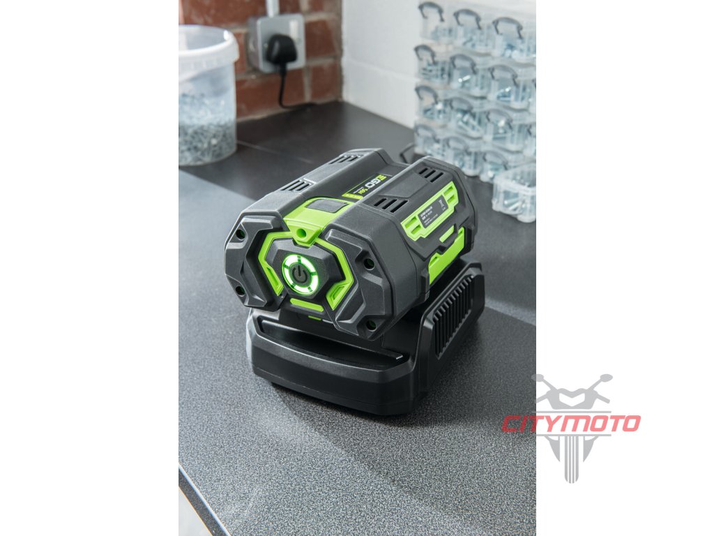 Pro standardní nabíjení baterií EGO je nutné použít inteligentní nabíječky EGO. Standardní nabíječka je opatřena ložem baterie tak, aby se baterie dostala do nabíječky pouze správným způsobem. Nabíječka je opatřena řídící elektronikou, která naprosto samostatně vyhodnotí stav baterie a automaticky zvolí režim nabíjení, dobu nabíjení a nabíjecí proud. Stav baterie a aktuální stav nabití je indikován LED diodami na panelu. Nabíječka je tak plně automatická bez jakéhokoliv nutného zásahu ze strany uživatele. Ergonomicky je navržena tak, aby byla dostatečně stabilní. Například od "0" do plného nabití 2,5Ah baterie trvá této nabíječce 50 minut a baterie 5,0Ah 100 minut. Takže při střídání dvou baterií mnohdy pokryjete výkon potřebný pro celodenní práci.
