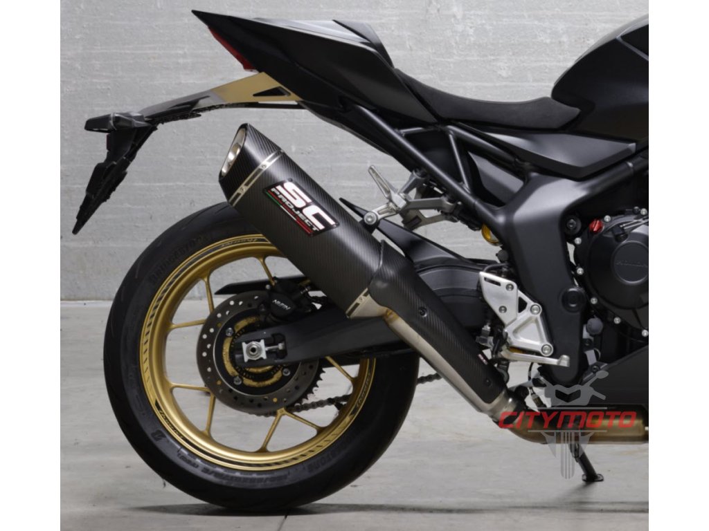 Sportovnost, zvuk a celkový zážitek z jízdy umocňuje nasouvací tlumič výfuku SC-Project. Homologováno pro použití na silnici, má celokarbonové tělo a obsahuje chránič paty z uhlíkových vláken, který byl exkluzivně navržen pro CB1000 Hornet. Poznámka: Platí pro verzi CB1000 Hornet SP