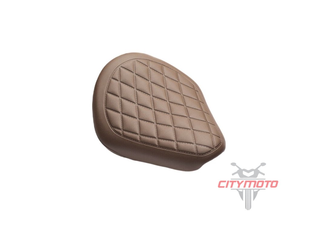 Hnědé - Zakázkové sedadlo jezdce v buvolově hnědé barvě *YRA04L* podtrhuje i díky vatelínu s diamantovým vzorem divoký design modelu Rebel. Prošívání speciálním způsobem tak, aby byla vnitřní výplň dostatečně chráněna před vlhkostí.