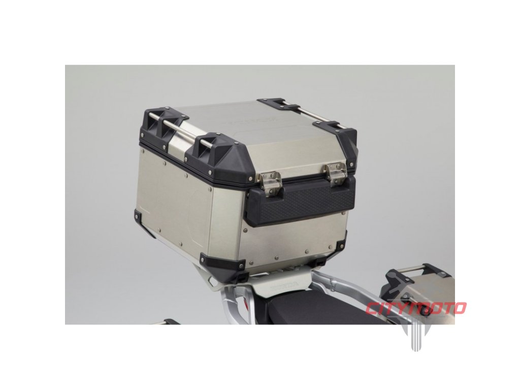 | Sada obsahuje ALU 42L horní kufr s opěrkou a deskou nosiče. Kufr je vyroben ze silného, přesto lehkého hliníku, nabízí možnost uložení 1 off-road helmy a dalších potřebných položek. Díky 1 key zámku může být ovládán klíčem od motocyklu. Hmotnost 6kg, maximální nosnost 6kg, rozměry š 40,3cm x h 40,3cm x v 32cm. |