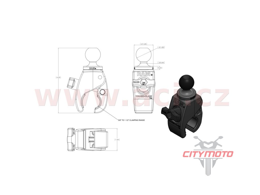 Malá svěrka s ručním upínáním "Tough-Claw", průměr 15,9-38,1 mm, RAM Mounts