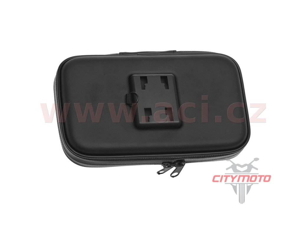 - uzavíratelné - vhodné pro mobilní telefony o max. rozměrech 160 x 90 x 20 mm - voděodolné - krytý zip - materiál: černá syntetická kůže - dotyková vrchní fólie - molitanová výplň uvnitř - spodní strana obsahuje slot pro držák na kolo/moto (v nabídce 3 typy)Doplňkové parametry