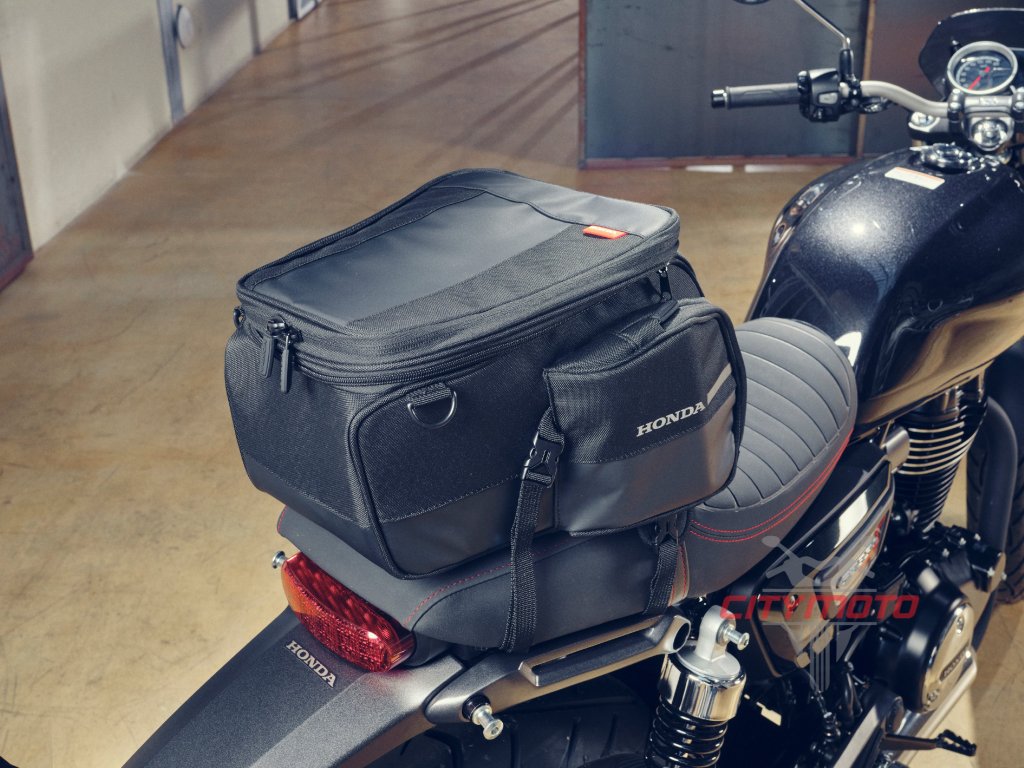 Funkční taška speciálně přizpůsobená zúženému tvaru zadního sedadla. Objem 15 l lze rozšířit na 22 l. Snadno se připevňuje a zůstává dokonale stabilní díky přiložené montážní sadě. Pláštěnka je součástí sady. Rozměry v mm (š x d x v): 355 x 365 x 243 Sada obsahuje: • Horní brašna (08L73-MKJ-D00) • Horní brašna - montážní sada (08L70-MKF-D40)