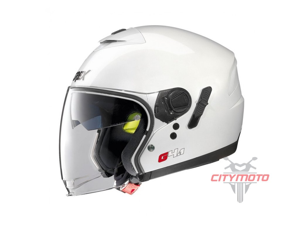 Moto helma GrexG4.1 je novou Jet helmou z nabídky Grex®. Moto helma je vhodná do města, tak i k delšímu cestování. Moto helma má velmi moderní linie, které dotváří horní vstup vzduchu a dvojice zadních vývodů teplého vzduchu. G4.1 nabízí velmi široké hledí, dálé je vybavena VPS sluneční clonou, vysoce prodyšným polstrováním. K zapínání je u G4.1 použit systém přezky MICROLOCK.