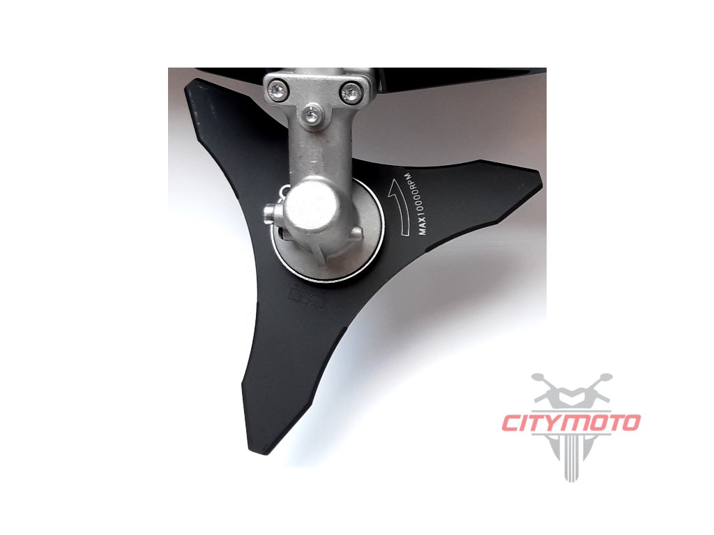 Trojzubý ocelový žací kotouč o ∅ 255mm a tl. 3mm s otvorem o ∅ 25,4mm je určen výhradně pro křovinořezy s pevnou náhonovou hřídelí. Ocelový kotouč je velmi pevný s ostrými břity, otáčejícími se velkou rychlostí. Při použití se řiďte bezpečnostními pokyny pro použití křovinořezu a žacího kotouče.