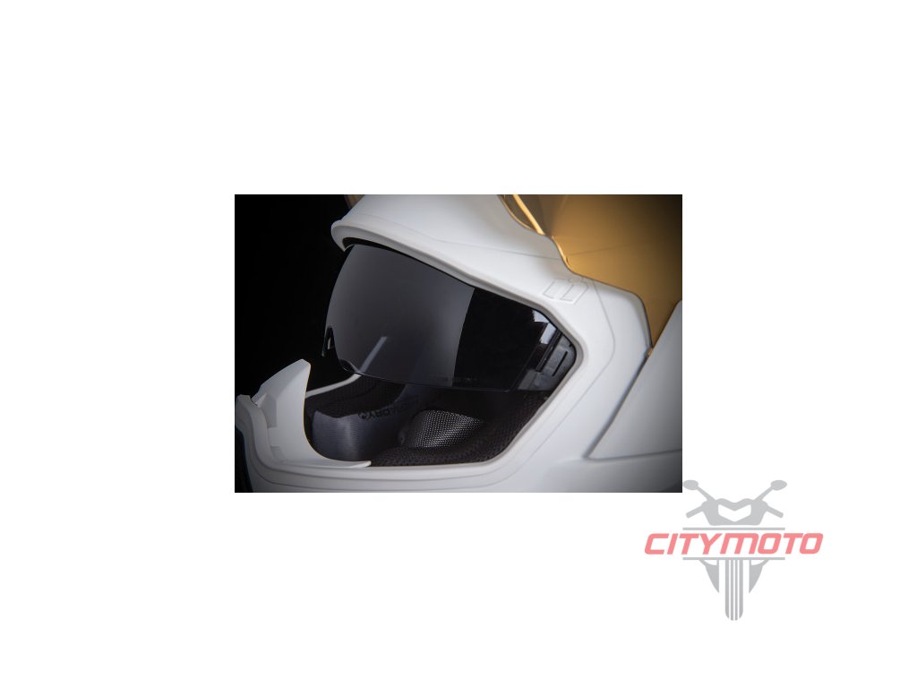 • Přilby Icon Airflite mají dvě plexi. Čiré tvrzené plexi FliteShield ™ s úpravou proti mlžení a integrovanou výměnnou sluneční clonu DropShield ™ díky které máte sluneční paprsky pod kontrolou