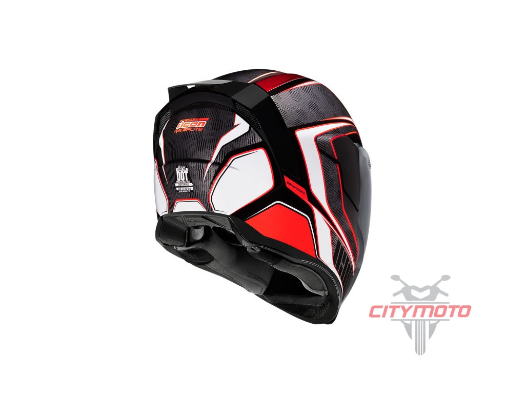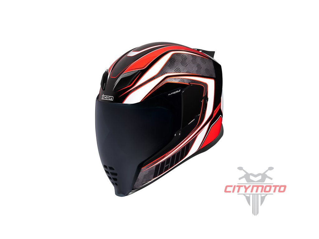 • Přilby Icon Airflite mají dvě plexi. Čiré tvrzené plexi FliteShield ™ s úpravou proti mlžení a integrovanou výměnnou sluneční clonu DropShield ™ díky které máte sluneční paprsky pod kontrolou