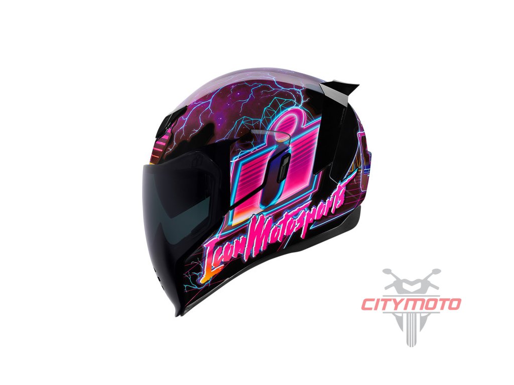 • Přilby Icon Airflite mají dvě plexi. Čiré tvrzené plexi FliteShield ™ s úpravou proti mlžení a integrovanou výměnnou sluneční clonu DropShield ™ díky které máte sluneční paprsky pod kontrolou