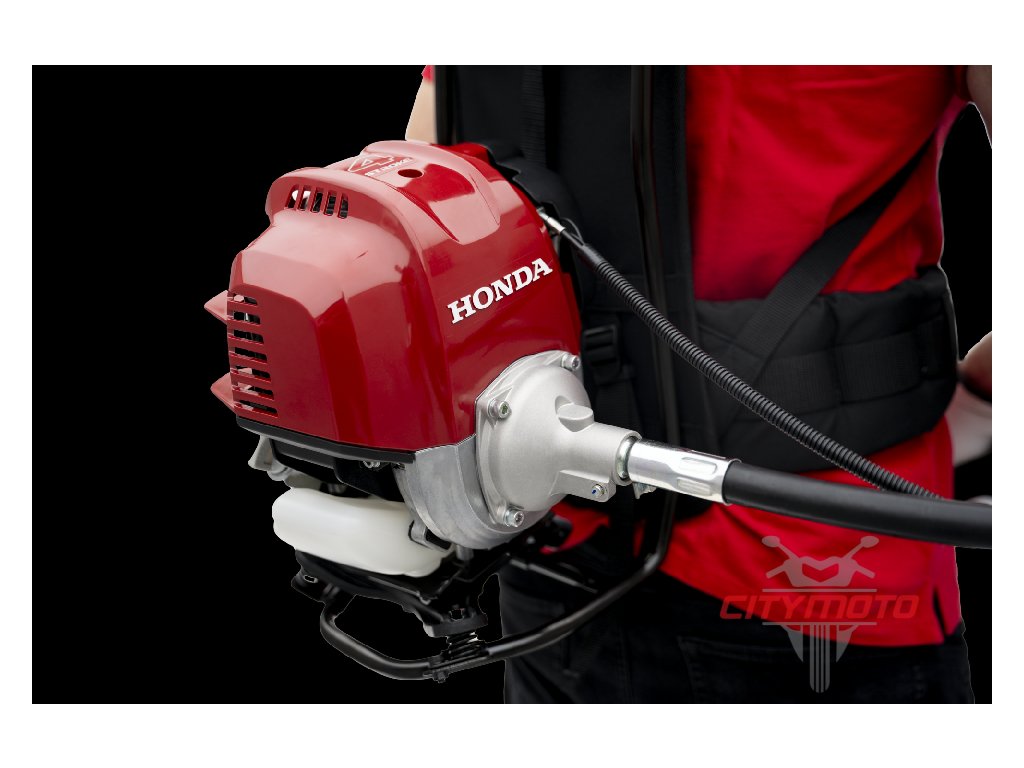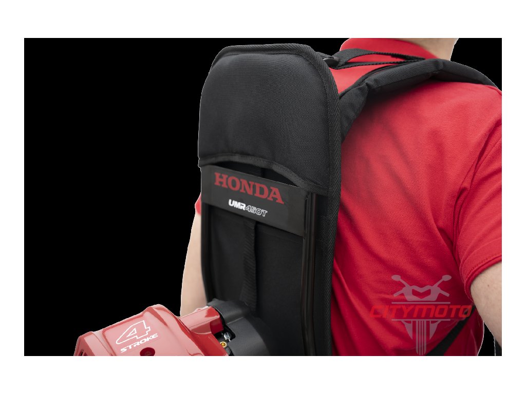 Honda UMR 450 L: zádový model křovinořezu Honda, poháněný mimořádně silným 4-taktním motorem GX50, se snadným startováním, stabilním a konstantním výkonem 2HP, antivibračním nosným rámem s komfortním zádovým postrojem a profesionální žací strunovou hlavou typu Bump & Feed v základním vybevení.
