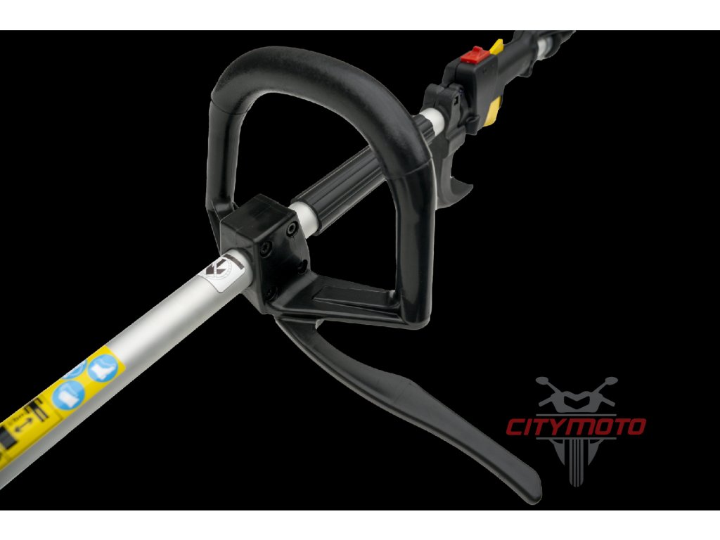 Zádový křovinořez UMR450 je nenahraditelný pomocník při likvidaci přerostlých travin, náletů a křovin hlavně v prudkém svahu, v sadech, vinicích, parcích a úzkých či nepřístupných prostorech na zahradách. Hmotnost motoru je rovnoměrně rozložena důmyslným rámem a komfortním postrojem na bedra uživatele. Kombinované pružinové tlumiče (s prodlouženou životností ve srovnání s gumovými silentbloky) byly navrženy s důrazem na dokonalé pohlcení veškerých vibrací, produkovaných chodem motoru. Každý uživatel při práci později sám ocení mimořádný komfort a pohodlí při práci. S komfortním nosným systémem pracujete díky dokonalému rozložení hmotnosti i při dlouhodobém použití bez námahy a pohodlně. Zádový postroj je ergonomicky ztvárněný tak, aby byl na zádech dobře odvětraný a prodyšné bohatě polstrované popruhy zajišťují příjemný pocit při nošení a podstatně oddalují pocit únavy při dlouhodobé práci. Přenos síly od motoru na pracovní nástroj je zajištěn ohebnou hřídelí, takže je zcela zajištěna maximální míra manévrovatelnosti a obratnosti. Obsluha při práci má neustále stabilní a bezpečný postoj i v náročném členitém či svažitém terénu. Díky jednoruční multifunkční rukojeti můžete stroj snadno a spolehlivě ovládat jednou rukou. Profesionální strunová hlava s doplněním náhradní strunové nápně bez nutnosti demontáže je schopna spolehlivě pracovat se strunou o ∅ 2,7 nebo 3,0 mm. Výkonný, úsporný, tichý motor, schopný udržet konstantní výkon ocení hlavně uživatelé z komerčního prostředí komunálních služeb při likvidaci hustých porostů v nepřístupném či stísněném terénu. Patentově chráněný miničtyřtaktní motor o obsahu 50 ccm o výkonu 2,0 HP je s dostatečnou rezervou bez problémů schopen pokrýt požadavky náročných uživatelů. Naopak díky vysokému výkonu a velkému kroutícímu momentu není dovoleno použití ocelového žacího kotouče nebo jiného žacího nástroje než strunová hlava s nylonovou náplní. Svým výkonem, komfortem použití a hlavně neagresivní hlučností a emisemi hravě překonává své konkurenty s dvoutaktním motorem. Základní výbava křovinořezu zahrnuje kromě stroje samotného, komfortní, bohatě polstrovaný zádový postroj, strunovou hlavu, ochranný kryt, sadu nářadí pro montáž a základní údržbu a praktický textilní vak na toto příslušenství.