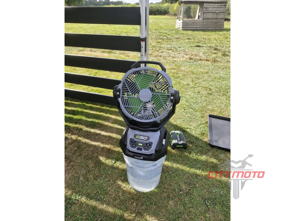 Ventilátor má průměr 25 cm a vzhledem k jeho kompaktní velikosti a hmotnosti 4,6 kg je snadno přenosný. Lze si zvolit rychlost vzduchu z 5-ti možností plus funkce "turbo". Oběžné kolo vantilátoru je otočné ve 2 osách, tzn. jak horizontálně, tak i vertikálně v rozsahu 60°, 120°a 180°. Ve středu ventilátoru se nachází 2 vodní trysky, do kterých v případě nutnosti podává vodu integrované vodní čerpadlo. Vytváří se tak vodní mlhovina, jejíž intenzitu zle řídit kromě rychlosti ventilátoru i třema režimy výkonu vodního čerpadla. Vytvoříte si tak optimální prostředí. Maximální průtok vzduchu ventilátorem je 1.700 m3/hod. při max. rychlosti vzduchu 9 m/s. Jen pro představu, velikost horkovzdušného balónu pro pilota se 4 pasažéry je cca 3.000 m3. To znamená, že tímto ventilátorem byste takový horkovzdušný balón naplnili za necelé 2 hodiny. Slušný výkon na takového drobečka, že? A jak dlouho vydrží baterie? V sadě dodávanou baterií EGO 2,5Ah vydží ventilátor v režimu 1 běžet až 30 hodin nepřetržitě.
