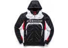 Černá mikina s červenou kapucí (uvnitř). S logem Akrapovič na přední kapse a velkým logem na zadní straně. Vyrobeno ve Slovinsku.Dostupné ve velikostech S, M, L, XL, XXL