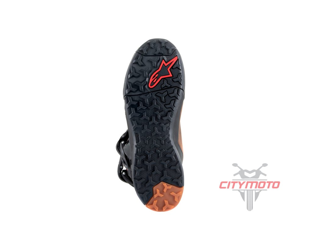 - Trvanlivá, lehčená a pružná podrážka s hrubším vzorkem vhodným do terénu a podobnými konstručními prvky z modelu bot CR-X disponuje pružným můstkem TPF (Transversal Protection Frame) a vnitřním absorpčním panelem v oblasti paty. Zajistí oporu a ochranu nohy při jízdě v kombinaci s pružností a dopadem na špičce 10 mm, díky kterým je bota komfortní při chůzi.