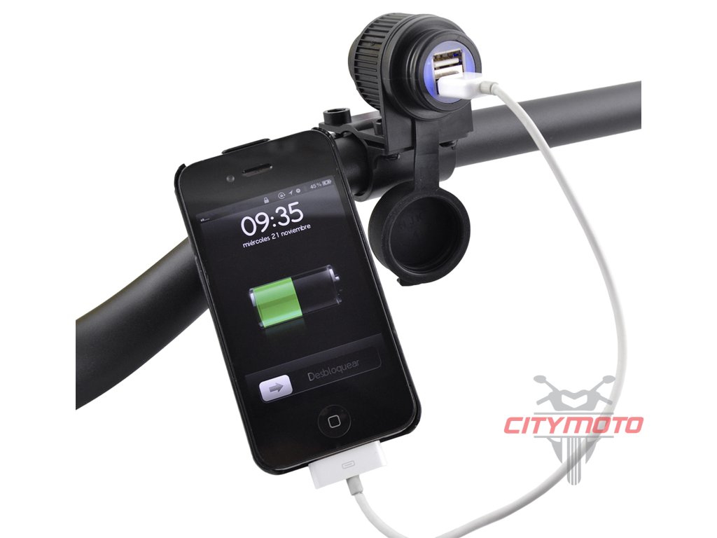 Dvojitá USB zásuvka s uchycením na řídítka