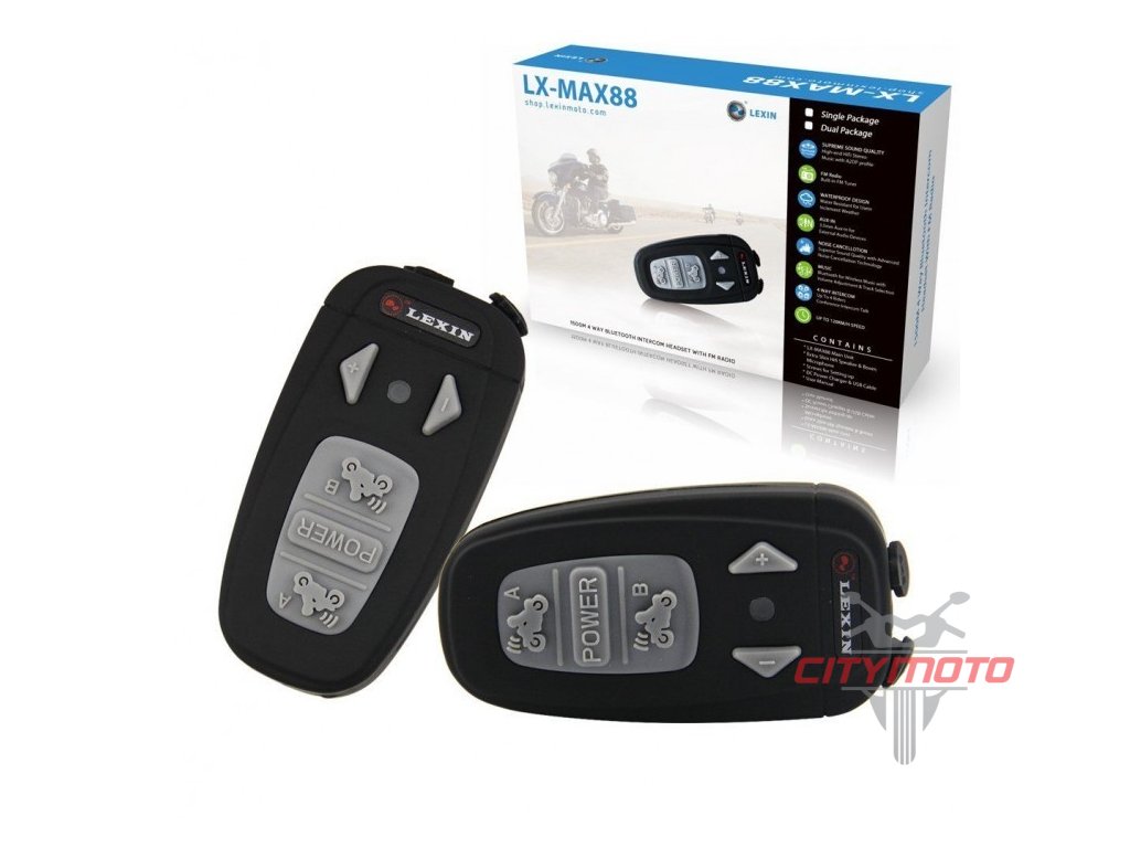 Interkom LX MAX 88 je komunikační zařízení s dosahem až 1500m, které lze použít pro komunikaci mezi jezdcem a spolujezdcem, nebo až se 4 stroji. Díky technologii Bluetooth je možné přijímat hovory z mobilního telefonu, tato funkce lze ještě vylepšit automatickým přijetím hovoru. Dále lze propojit s MP3, GPS navigací nebo jinými audio zařízeními. Komunikátor lze připevnit na jakoukoli integrální, výklopnou nebo otevřenou helmu.