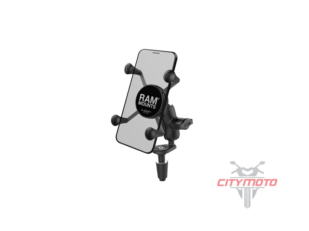 Držák mobilního telefonu X-Grip na motocykl s uchycením do krku řízení s průměrem od 12mm do 38mm.