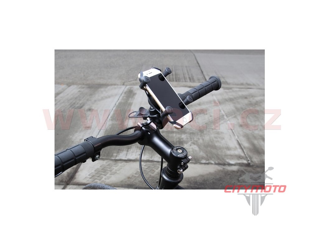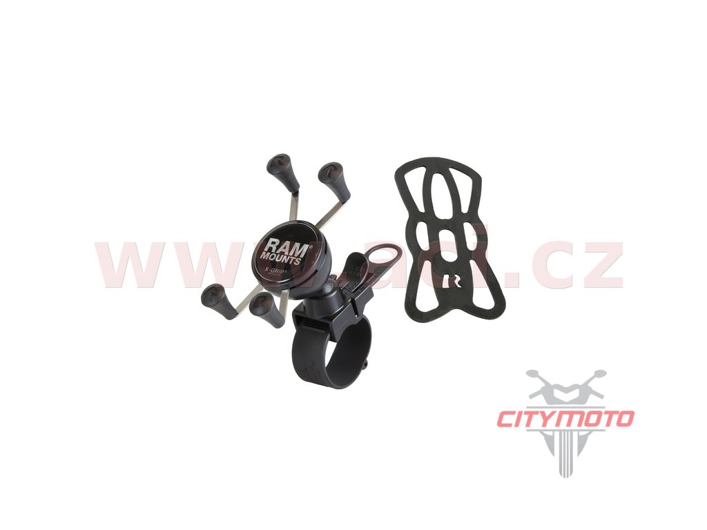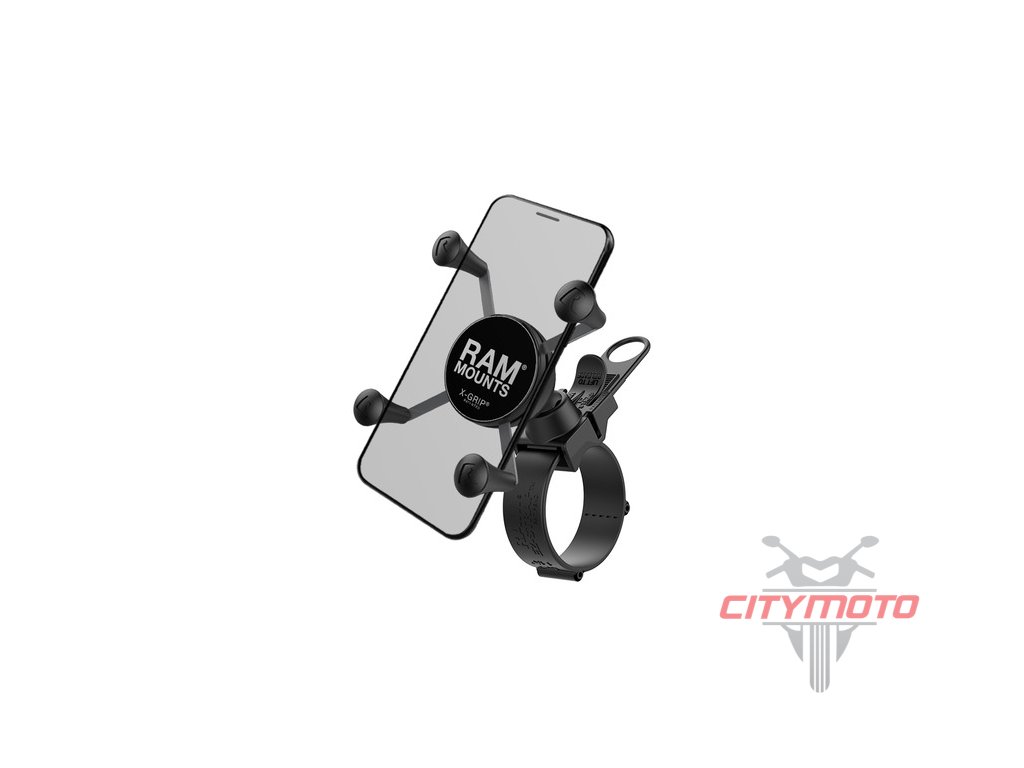 Držák smartphonu X-Grip se základnou EZ-Strap s krátkým ramenem. Držák lze použít na řidítka do průměru 60mm.