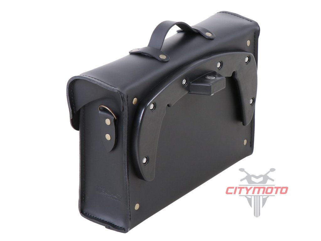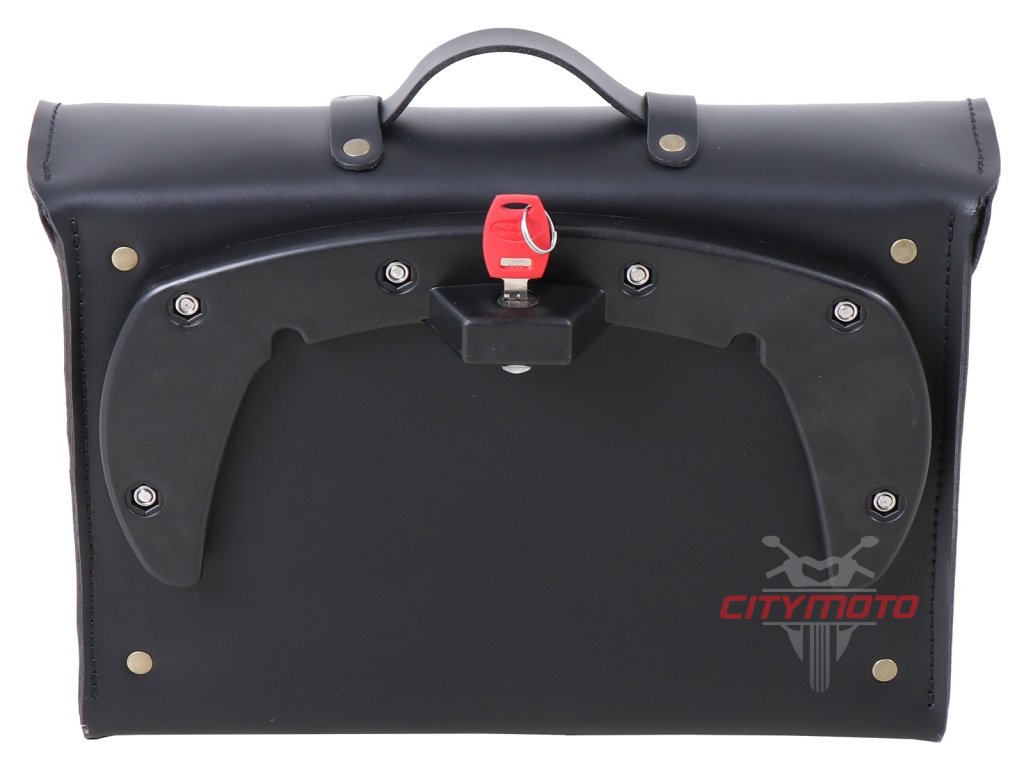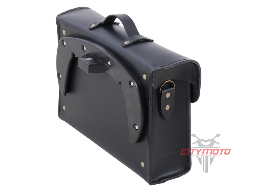 Kdo má rád retro, zamiluje si náš nový kufřík! Interiér nabízí prostor pro všechny důležité věci: 13palcový poznámkový blok i dokumenty formátu A4 lze uložit do velké hlavní komory. Ideální také jako taška přes rameno, protože ji lze kombinovat s ramenním popruhem. Vyrobeno z koňské kůže o tloušťce 3 mm. Ve dvou verzích: jako volnočasová taška bez uchycení na motorku a pro uchycení na držák kapsy C-Bow.