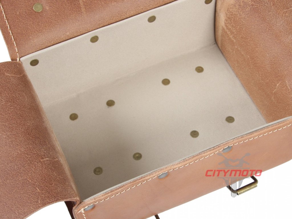 Legacy Rear Bag Leather je k dispozici v hnědé a černé barvě, skládající se z koňské kůže o tloušťce 3 mm a stabilní a odolné vnitřní podšívky.