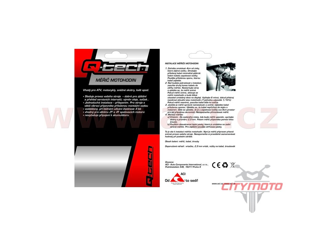 - sleduje provoz Vašeho stroje - dobré pro zjištění a přehled servisních intervalů výměn oleje, svíček apod. - jednoduchá instalace přilepením nebo připevněním pomocí přiložené montážní sady s kabelem - vodotěsný se stupněm krytí IP68 - vhodný pro většinu 2T a 4T spalovacích motorů - nevyžaduje připojení k akumulátoru - vhodný pro čtyřkolky, motocykly, sněžné skůtry, lodě apod. - rozměry D x V x tl. = 5,2 x 3,5 x 1,4cm - kvůli dosáhnutí maximální vodotěsnosti není vnitřní baterie vyměnitelná, její životnost jsou 2 rokyDoplňkové parametry