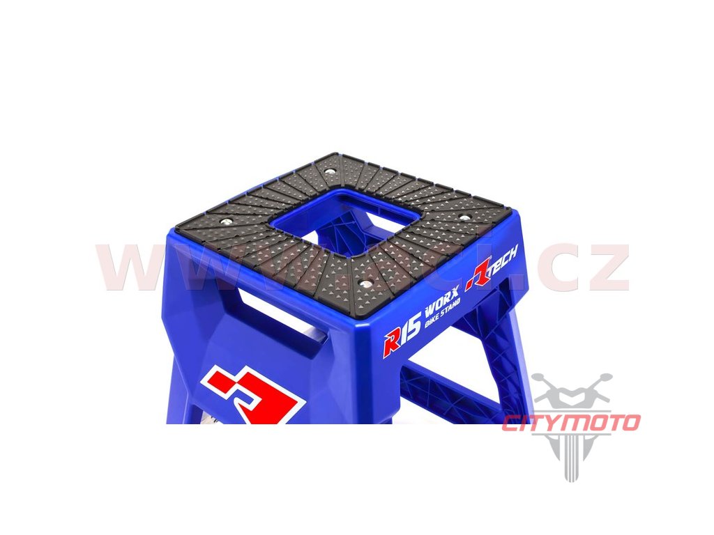 Stojan R15 WORX BIKE STAND je primárně určen pro motokros/enduro motocykly. Vyroben je z probarveného technopolymeru - na vrchu je černá gumová protiskluzová vrstva, bočnice jsou z anodizovaného hliníku.