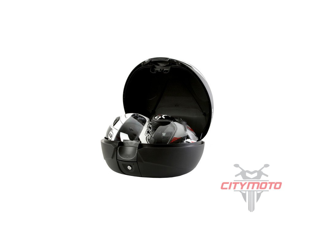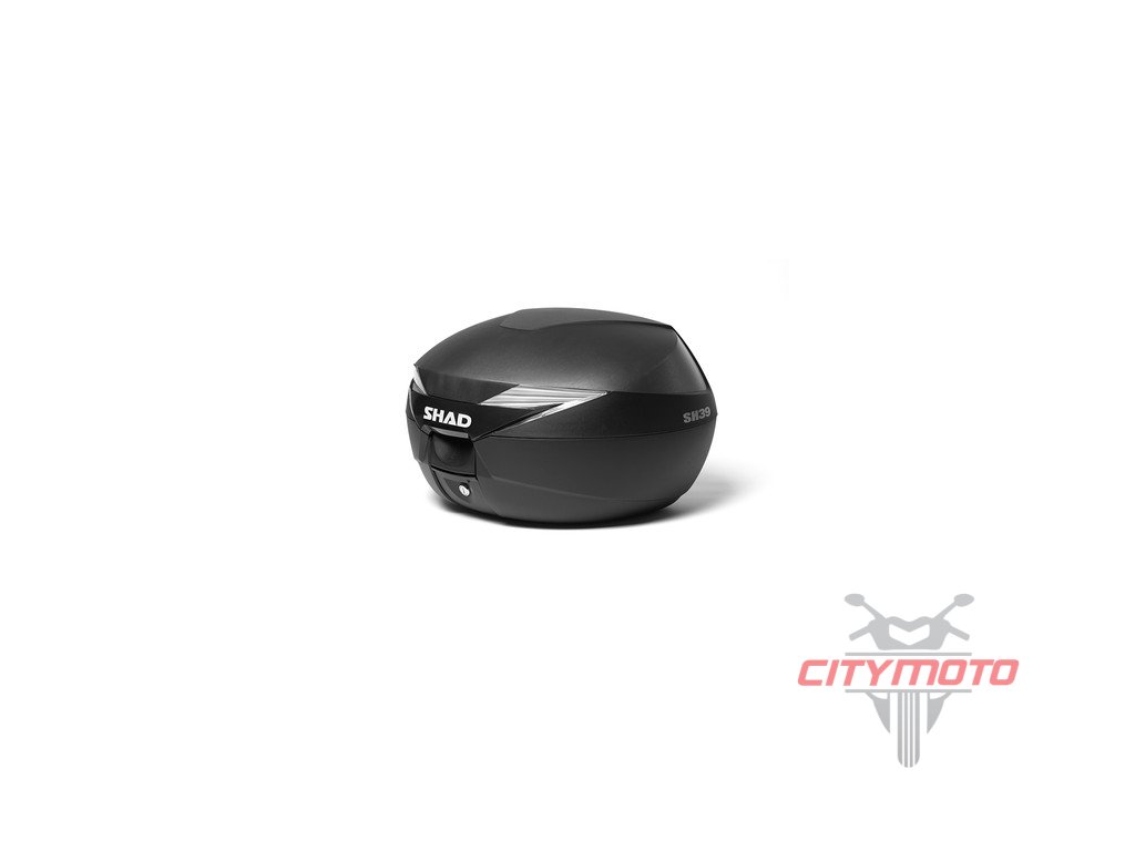 Krásný a pevný horní kufr s kapacitou dvou přileb typu Jet nebo jedné Integrální- a jedné Jet přilby. Díky patentovanému systému zamykání (1-zámkový systém) je možné Topcase SHAD SH 39 jednoduše uzamknout a v případě potřeby rychle a bez nářadí demontovat. Topcase je standardně dodáván včetně adaptéru a montážní sady, která zajišťuje optimální montáž pro všechny skútry a motocykly. Provedení : černý nelakovaný