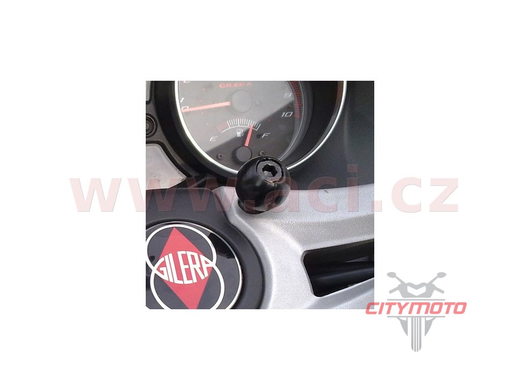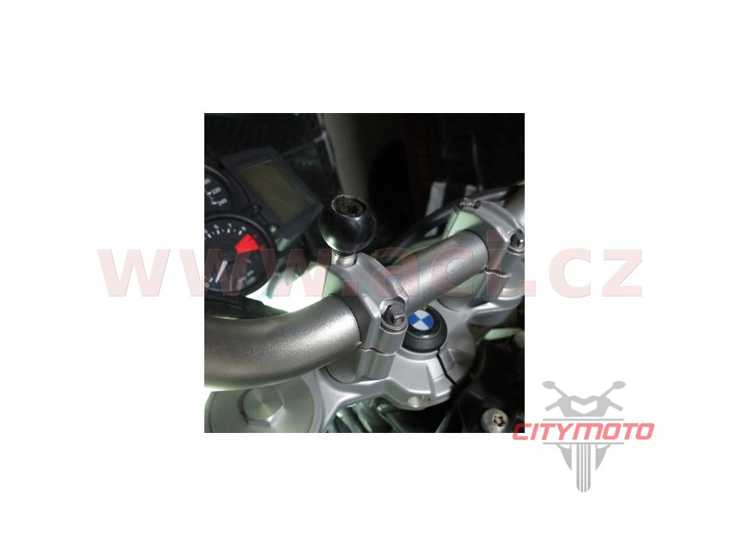 Úchyt na motorku nebo skútr primárně do klemu řidítek s kulovým čepem. Úchyt se připevňuje do závitu libovolného M8 šroubu a nahradí původní šroub. Patentovaný kulový čep je vyroben z velmi kvalitní pryže tak, aby tlumil nárazy a vibrace, které by jinak byly přenášeny na upevněné elektronické zařízení.