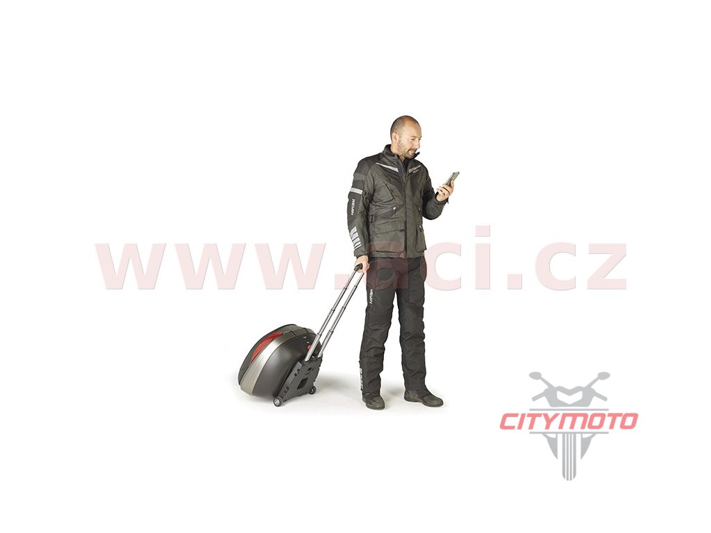 - po připojení ke kufru slouží jako kufr na kolečkách s madlem k tažení