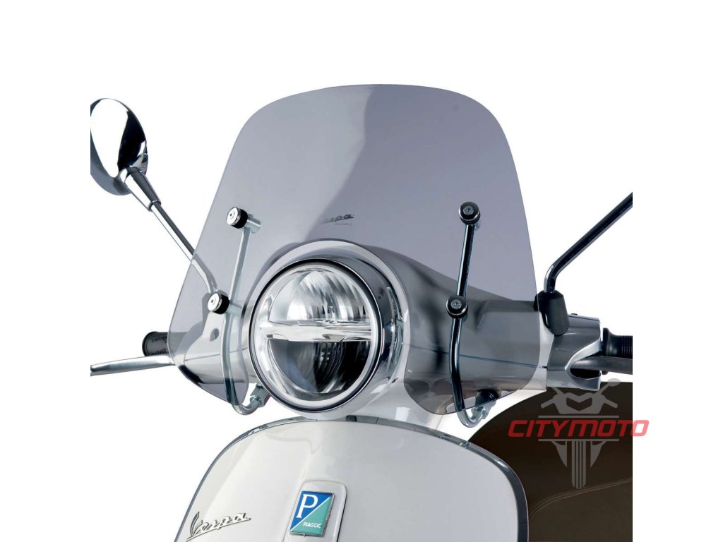 Sportovní čelní štít pro Vespa Primavera, vysoce kvalitní metakrylát, odolnost proti poškrábání a náraz, homologované, tloušťka: 4 mm, výška přibližně 170 mm, šířka přibližně 470 mm
