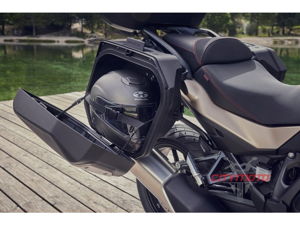 Jsou to právě detailní vylepšení, která z nového NT1100 dělají dokonalého společníka na dlouhodobé cestování, a na všech se podíleli lidé, na kterých záleží - majitelé NT1100. Nová dynamická přední kapotáž elegantně zahaluje jezdce do aerodynamické účinnosti při vysokých rychlostech, zvyšuje ochranu proti větru a snižuje únavu. Štít nastavitelný v 5 úrovních je nyní možné nastavit i vsedě (a při stání) jednou rukou. Obě víka brašen jsou hlubší, takže je v nich více místa a vejde se tam i celoobličejová přilba. Přední blatník je nyní prodloužený o dalších 150 mm směrem dozadu a funguje jako ochrana, která odvádí stříkající vodu pryč. Velká 20litrová palivová nádrž poskytuje svobodu jízdy na dlouhé vzdálenosti, kdy je možné ujet až 400 km mezi jednotlivými tankováními.