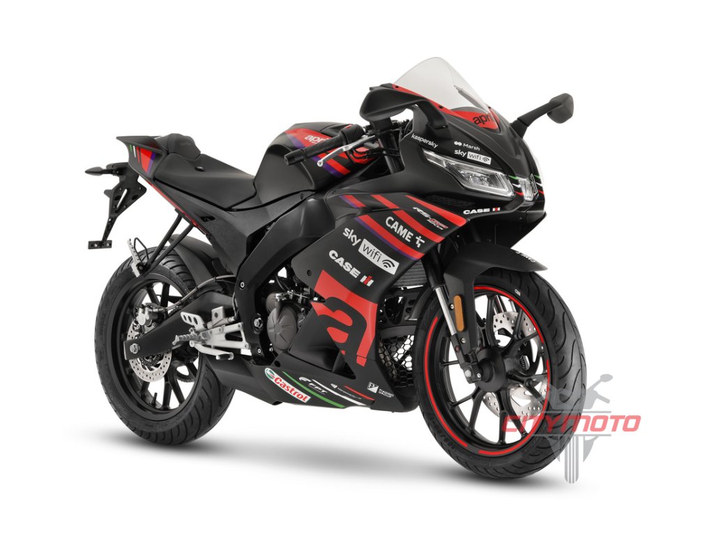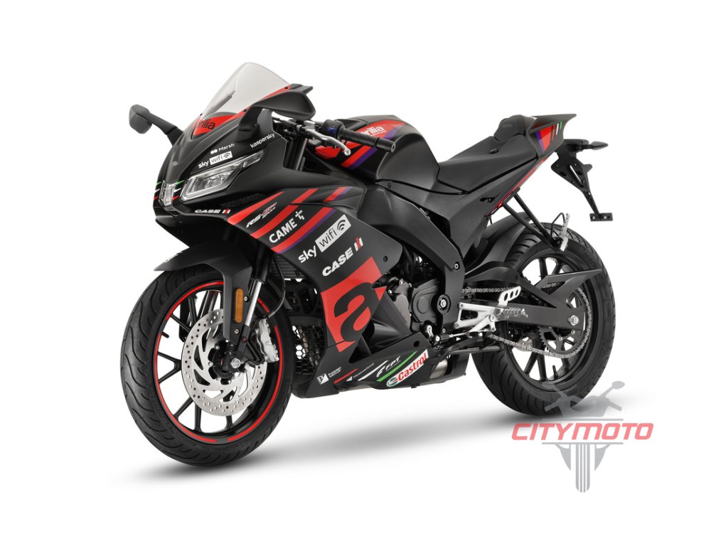 RS 125 GP Replica se může pochlubit agresivním vzhledem, který okamžitě prozrazuje její závodní duši. Grafika inspirovaná modelem RS-GP25 společně s, pro Aprilii typickými trojitými full LED předními světly sportovních motorek, upoutá pozornost na první pohled a vyzařuje čistý adrenalin. Matná černá kyvná vidlice a rám spolu s krytem sedadla spolujezdce ještě více zdůrazňují exkluzivitu tohoto stroje – každý detail je navržen tak, aby přinesl atmosféru závodů přímo na cestu.