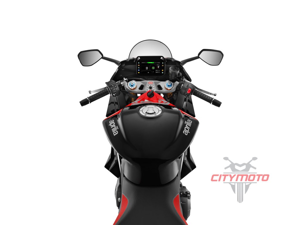 Aprilia RS 660 Factory posouvá elektroniku na soutěžní úroveň a odemyká další úroveň tvého výkonu. Balíček APRC (Aprilia Performance Ride Control) integruje komplexní systém elektronických asistentů, jako je například Launch Control, který zajišťuje bleskurychlé starty. Díky systému Multimap Cornering ABS pro optimalizované brzdění v zatáčkách a elektronickému plynu Ride-by-Wire přináší RS 660 Factory ještě více technologií a akce na silnici. Podsvícené ovládací prvky na řídítkách a 5“ plnobarevný TFT displej s technologií optického lepení zajišťují dokonalou viditelnost za všech podmínek.