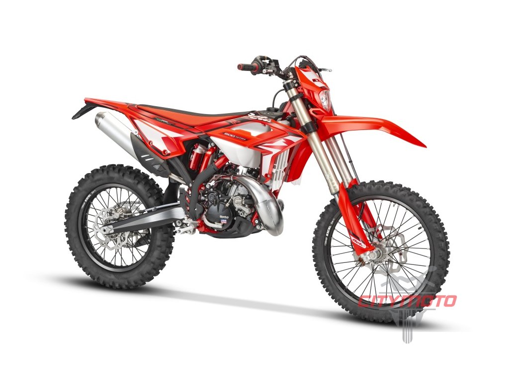 200 2T: Nastavení podvozku a motoru pochází od své menší sestry, při zachování extrémně nízké hmotnosti a vynikající manipulace, ale s rozhodně větším točivým momentem a výkonem. Oil-mix a elektrický startér z toho dělá kompletní motorku ideální pro enduro nadšence.
