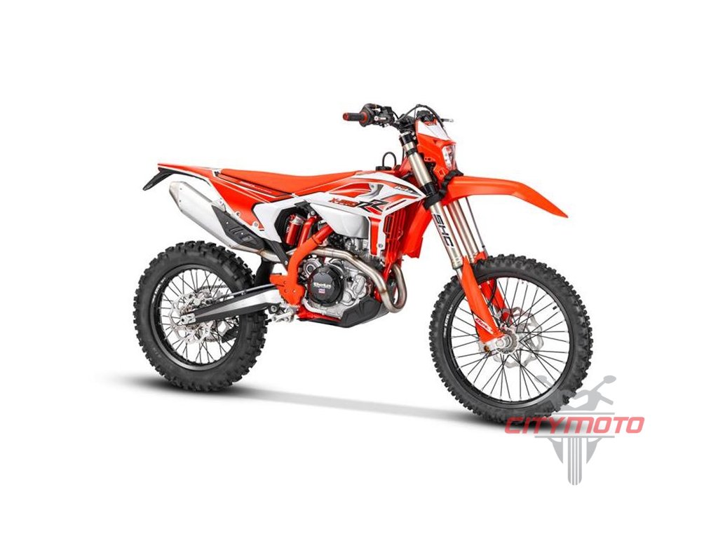 Navrženo výhradně pro ty nejnáročnější traily s funkcemi, které nenajdete u většiny ostatních enduro modelů, včetně nového rámu s o 20 mm nižší výškou sedla, zcela nové přední vidlice s jednou pružinou, odpružených klem řidítek, expanzní nádržkou chladicí kapaliny a také tahacího popruhu na předním blatníku. Završením seznamu změn jsou všechny nové plasty, které motocykl odliší od ostatních. Zcela nová přední vidlice ZF SHC je lehčí než u dřívějších standardních modelů RR díky použití jedné pružiny v pravé trubce vidlice, která obsahuje seřizovač předpětí, zatímco veškeré tlumení komprese a odskoku vidlice je umistěno v levé trubce. Tento design s jednou pružinou je ideální pro těžké enduro použití tím, že poskytuje jezdci při jízdě „zasazený“ pocit. Umožňuje také vidlici reagovat rychleji než jiné konstrukce díky menšímu celkovému tření. Přední vidlici doplňují odpružené klemy s isoelastickými vložkami od XTrig, tyto klemy snižují vibrace a únavu jezdce. Zadní tlumič je také nový s aktualizovaným nastavením, které odpovídají zcela nové přední vidlici SHC. Pro zvýšení jízdních vlastností kola byla výška sedla snížena o 20 mm, aby se snížilo těžiště a poskytlo jezdci lepší postavení, když jde do tuhého. Novinkou je také tahací popruh pro případ, že je nutné přední kolo z extrémní situace zvednout nebo motocykl popotáhnout v prudkém výjezdu. Nový rám, byl převzat z modelů RR Racing MY24 a RX. Tento nový rám má přepracovaný krk řízení, který je silnější než u předchozích modelů a poskytuje lepší kontrolu díky menší flexibilitě. Spolu s novým rámem byl přidán nový hlavní válec zadní brzdy Nissin, který poskytuje lepší výkon zadních brzd. Tato nová nádržka pojme větší objem kapaliny, která pomáhá ochlazovat systém při extrémním brzdění. Modely RR X-Pro mají svůj osobitý vzhled s novými plasty. Nově navržená maska předních světlometů, nové elegantní panely nádrže a zakončené novým zadním blatníkem. Nová grafika završuje úžasný vzhled této řady.