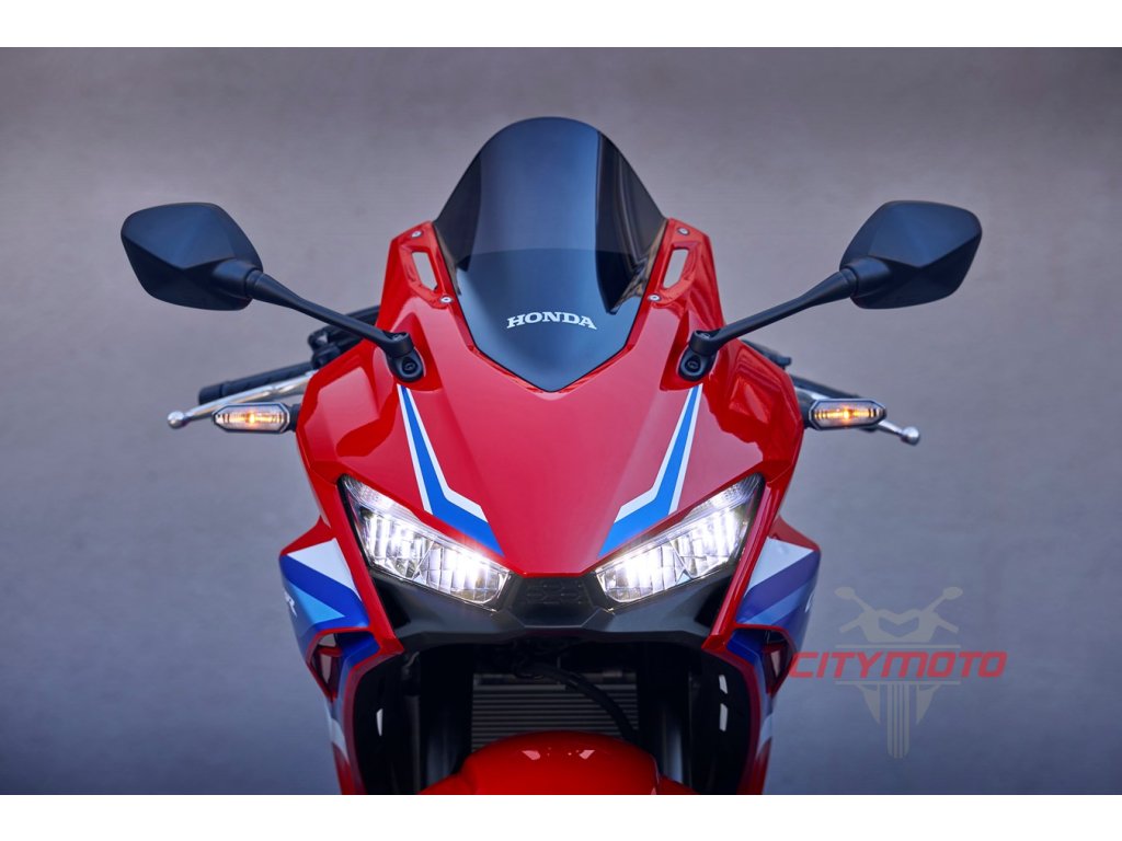 CBR. Tři výjimečná písmena s významnou historií. Design stroje CBR500R vychází z modelu Fireblade – s novým lakem a grafikou přímo z boxové uličky – a má stejná aerodynamická křídla, která zajišťují stabilitu při nájezdu do zatáčky a ostrou obratnost ve vysoké rychlosti. Od agresivně přepracovaných světlometů, které vysílají široký a pronikavý paprsek pro bezpečnější průjezd zatáčkou v noci, přes tvarovanou kapotáž pro rychlou jízdu až po pevně obepínající sedlo, je tento motocykl etalonem sportovního zážitku.